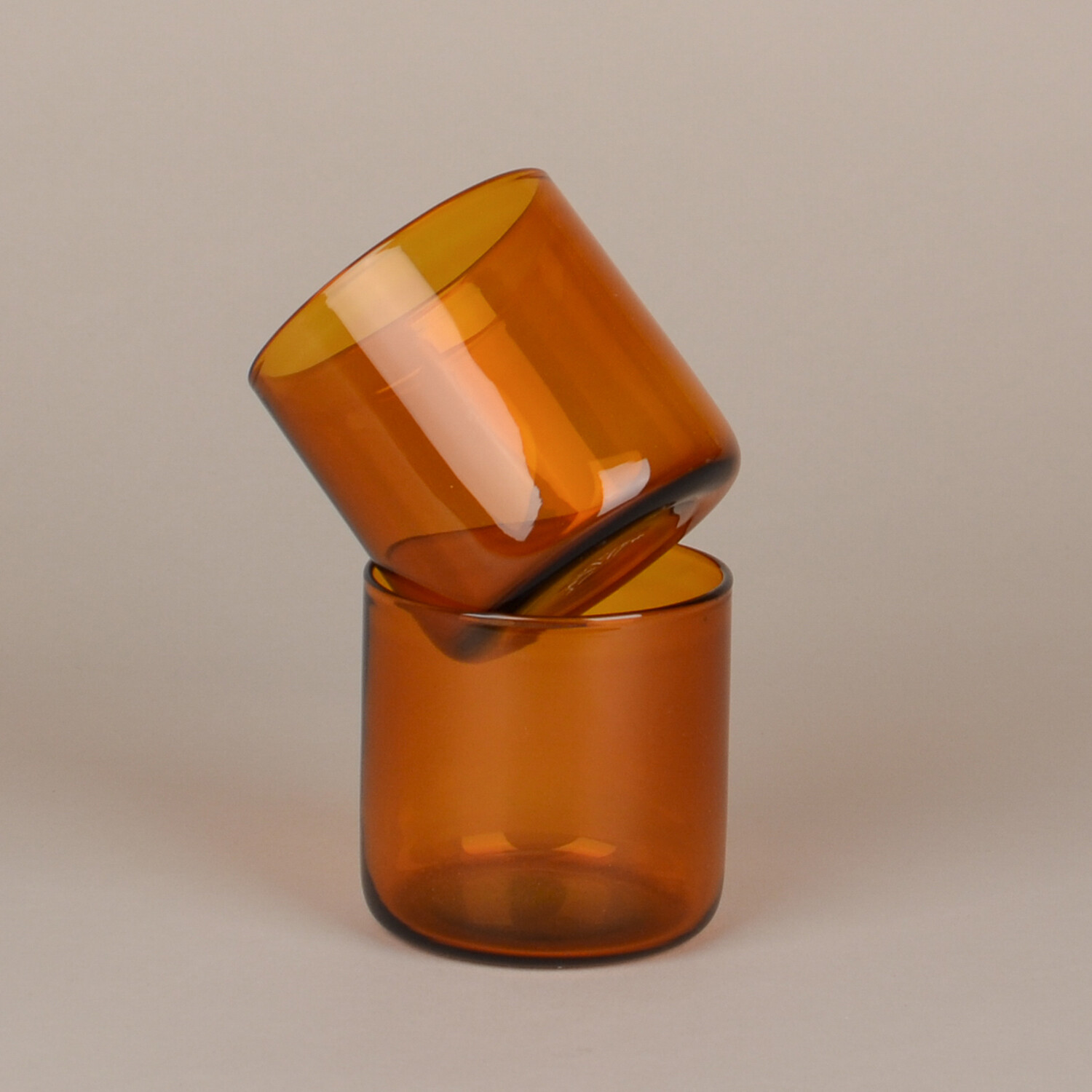 These straight-sided glasses embody a modern aesthetic—but the amber glass gives them a warm vintage vibe. We call these rocks glasses, but you’ll find yourself using them for everything from cocktails to kombucha. The extra-thick borosilicate glass is durable and can rapid handle temperature changes like a champ.