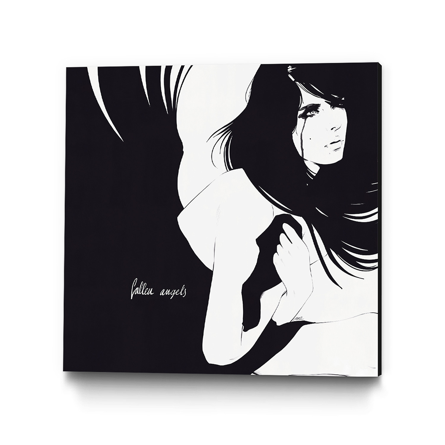 This high quality stretched canvas print has been created with a flattering black edge that complements the fashionable style of artist Manuel Rebollo. The intense inky black image depicts a seemingly broken-hearted femme fatale, her dark eye makeup streaming slowly down her porcelain white face.