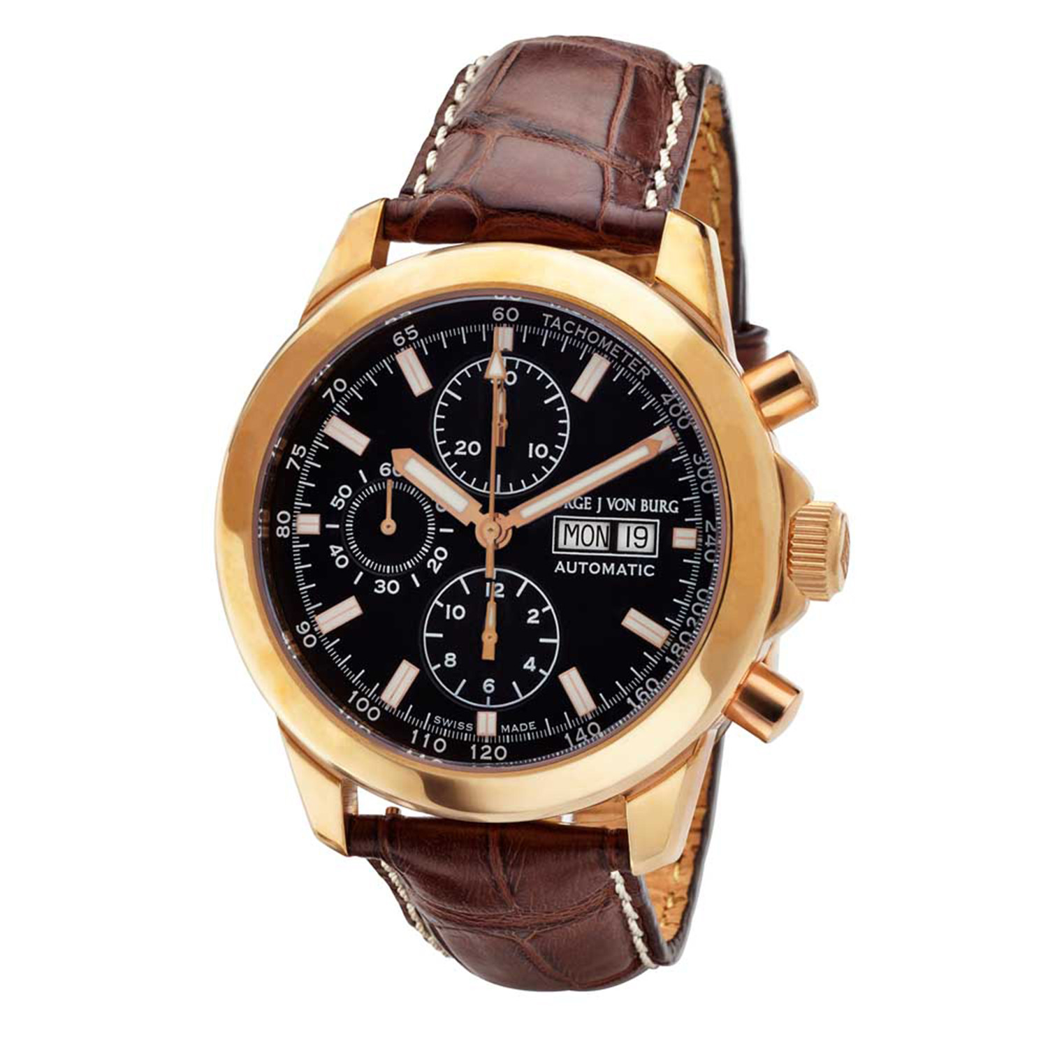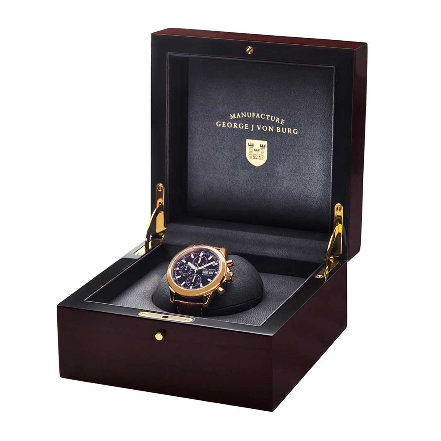 Manufacture George J von Burg stands at the crossroads between four guiding principles: quality, precision, durability, and affordability. Featuring exclusively Swiss-made mechanical watches, the collection offers classic styling with state-of-the-art manufacturing that shows in the workmanship of each piece.