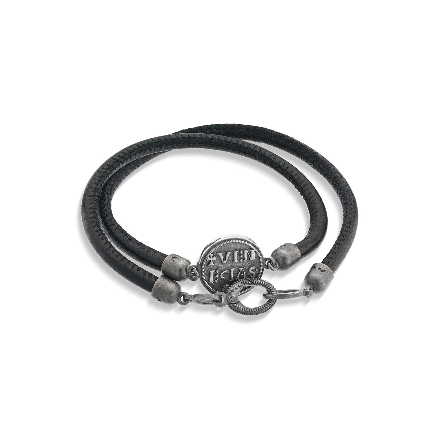 Moneta Sovereign Disc Leather Bracelet // Black