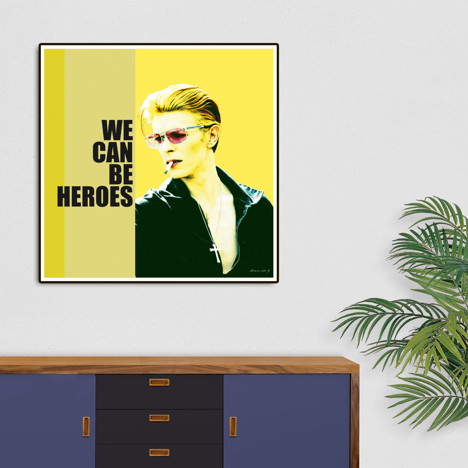 From a series by artist Marcus Guinoza depicting artists and their most-loved lyrics, this tongue in cheek take on fine art is available in the unique art block format. Bowie is numbered and signed, as well as being limited edition, and mounted to a masonite board so it pops out against a wall even without framing.