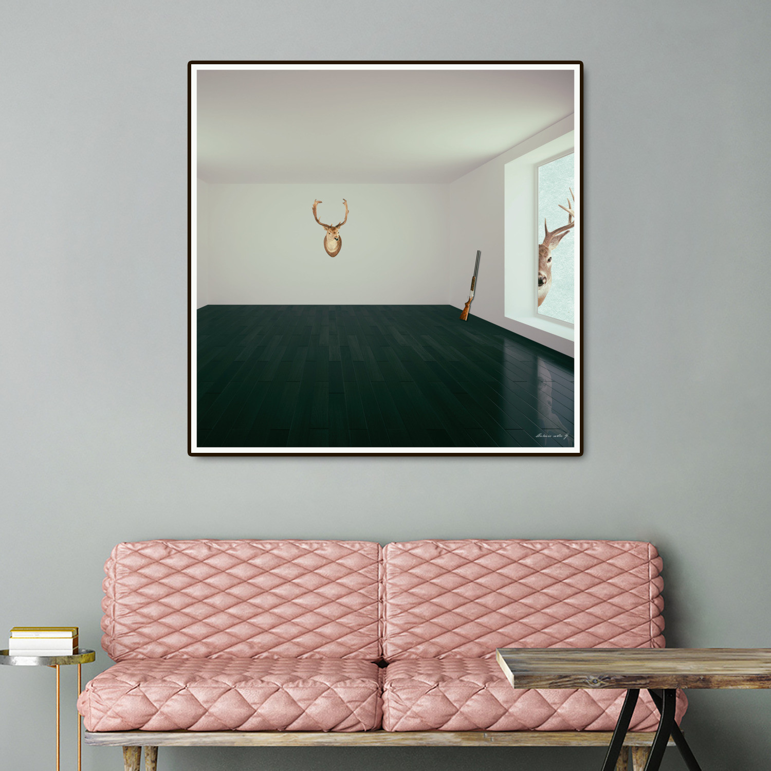 From a series by artist Marcus Guinoza depicting what happens when the wild comes inside, this tongue in cheek take on fine art is available in the unique art block format. The Last Deer is numbered and signed, as well as being limited edition, and mounted to a masonite board so it pops out against a wall even without framing.