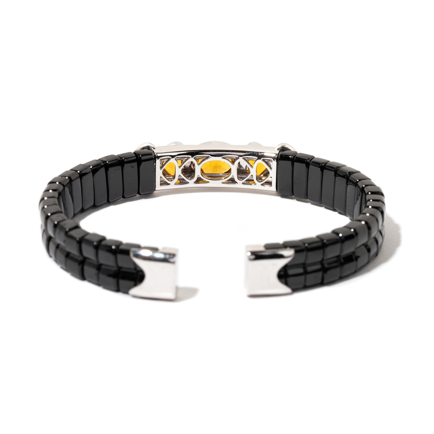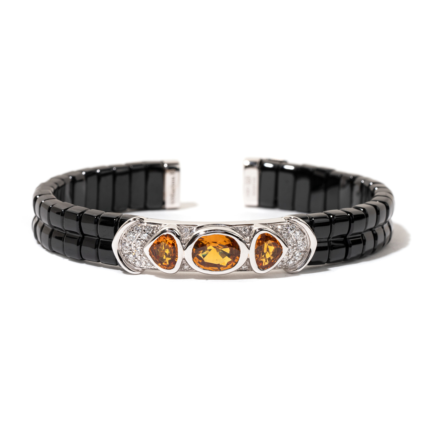 18k White Gold Orange Sapphire Yves Cuff // Jade + Diamond Bracelet // 6.25" // Store Display