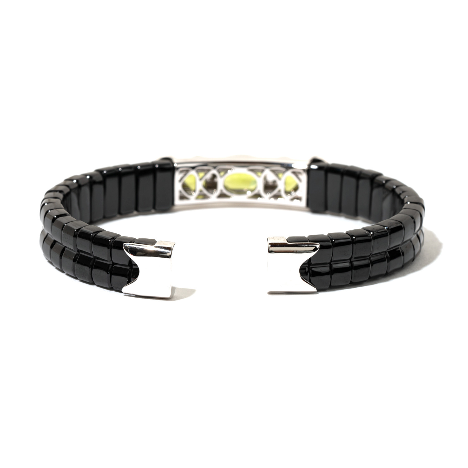 18k White Gold Peridot Yves Cuff // Jade + Diamond Bracelet // 6.25" // Store Display