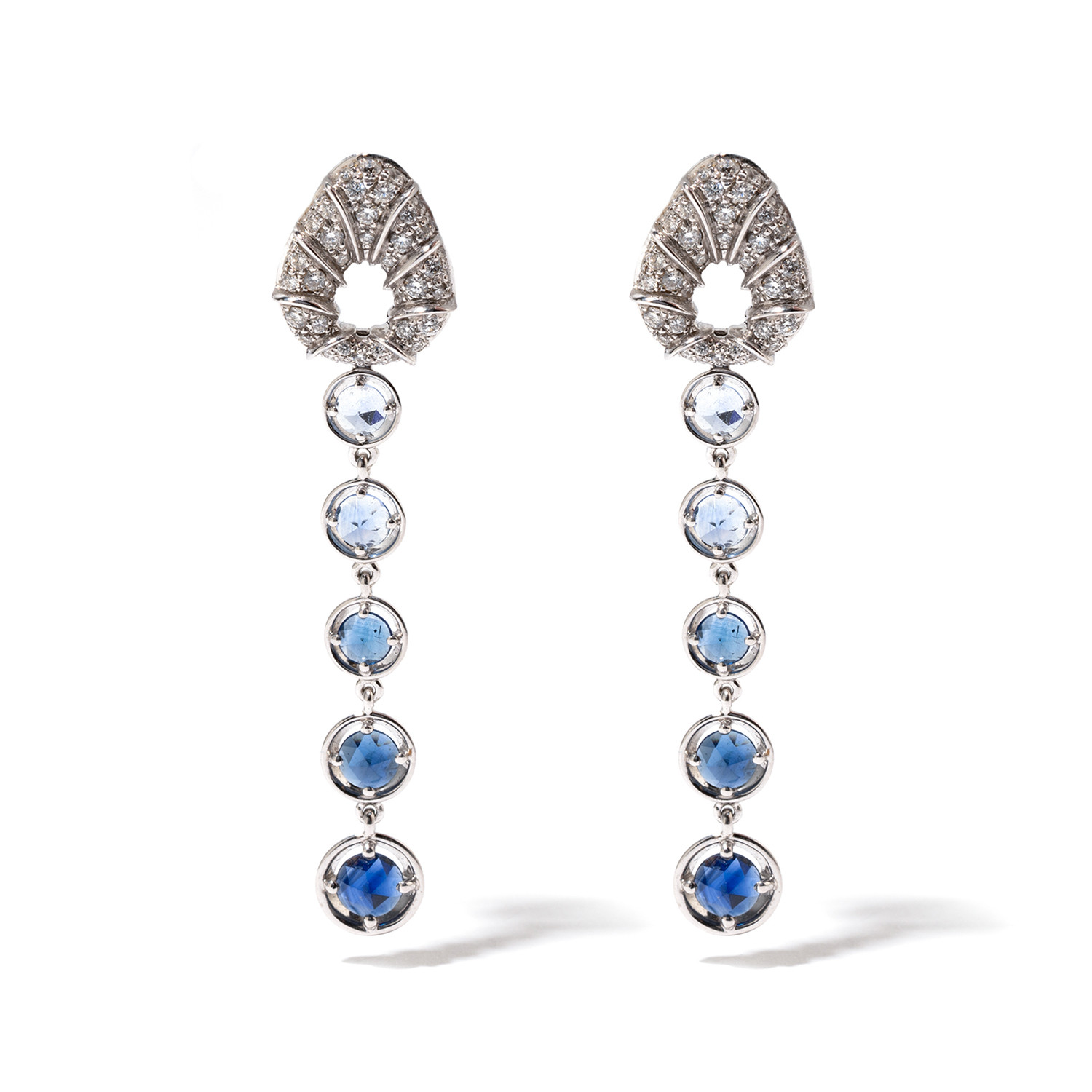 18k White Gold Sapphire + Diamond Pampilles Earrings // Store Display