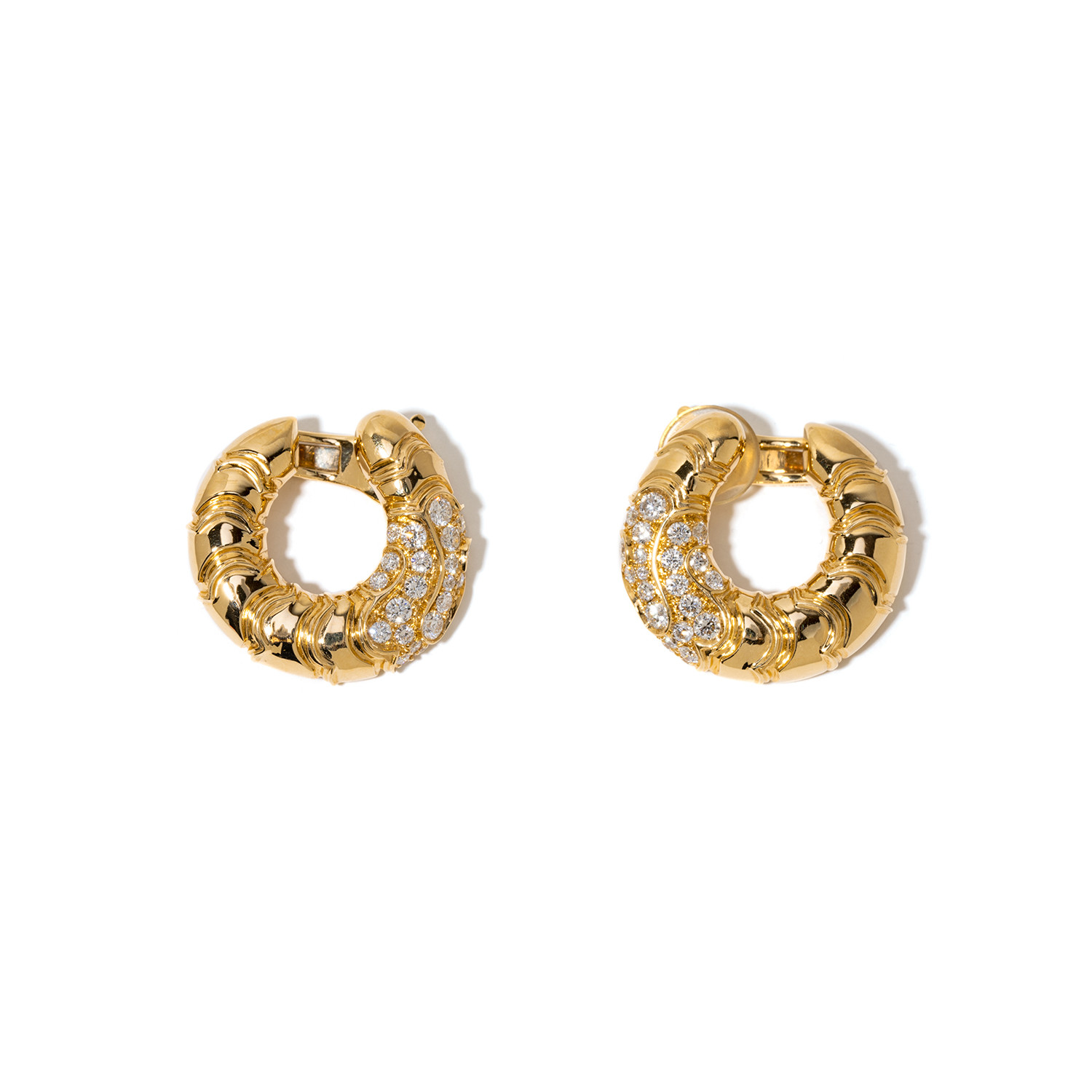 18k Yellow Gold + Diamond Onda Earrings // Store Display