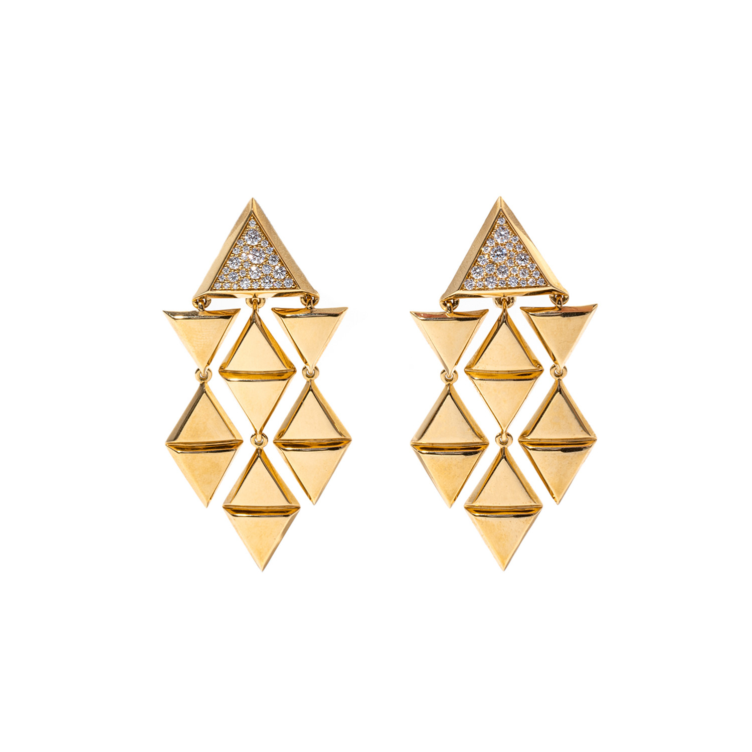 18k Yellow Gold + Diamond Triangoli Earrings // Store Display