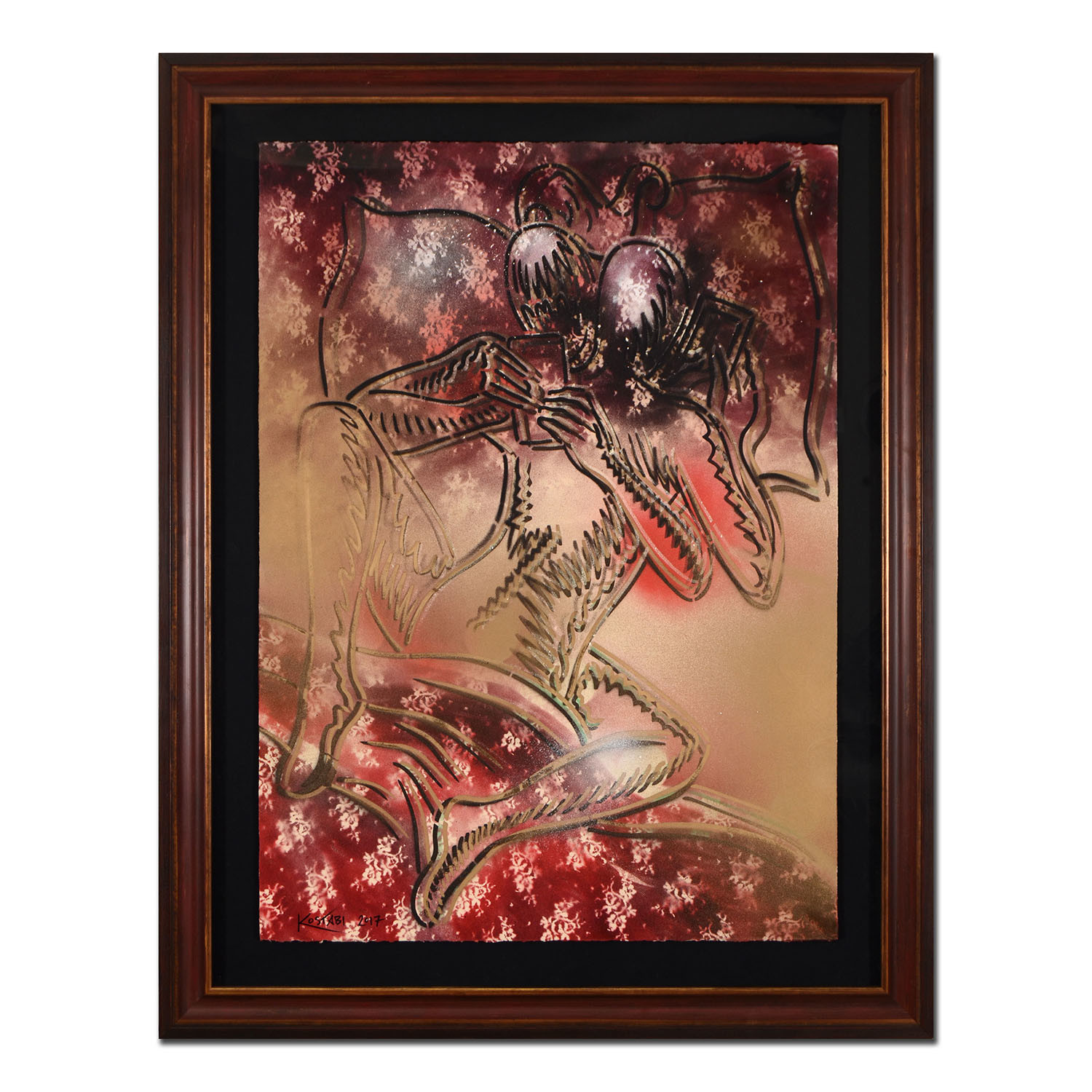 Mark Kostabi (1960-), is an American artist, sculptor, and composer, known for his abstract paintings of faceless figures, that are often meant as a comment on the social, political, and psychological state of the world. With a distinctive style influenced by other greats like Fernand Léger and Giorgio de Chirico, Kostabi has designed unusual and colorful pieces for a vast array of purposes, including album covers for Guns N' Roses, The Ramones, Seether, and more. And that nostalgic, edgy artistry can be yours forever, with this incredible original work, autographed by the man himself - the only one of it's kind to ever exist.