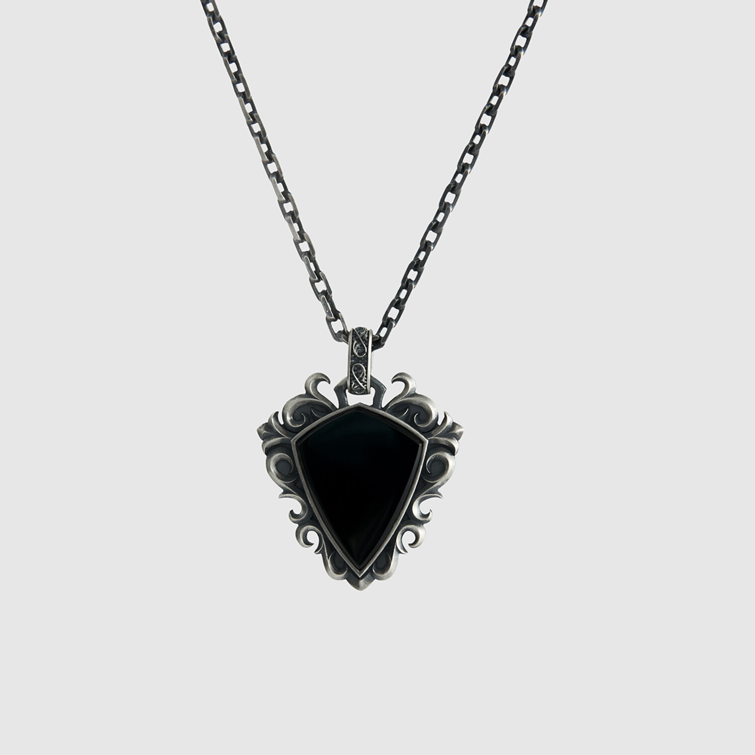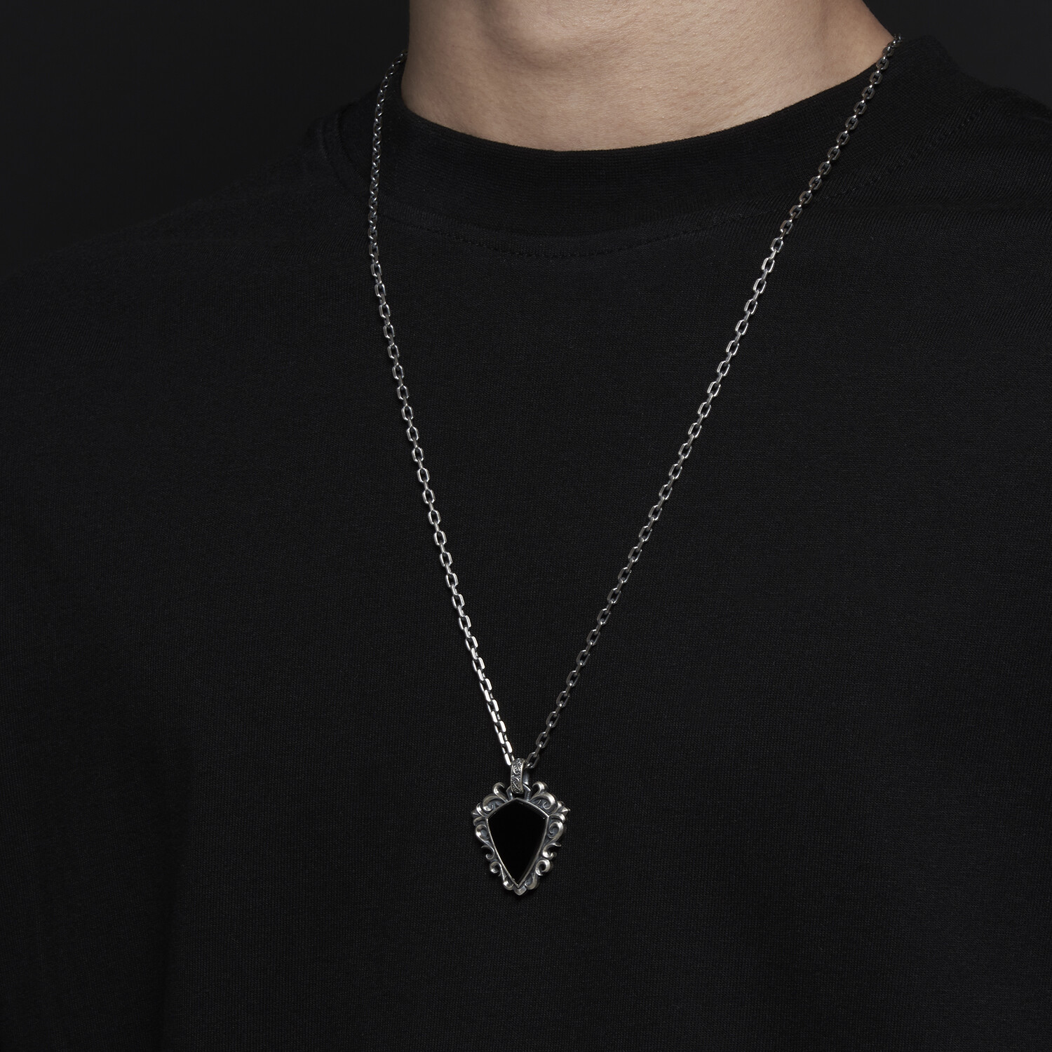 Baroque Black Onyx Pendant + Silver Bold Chain