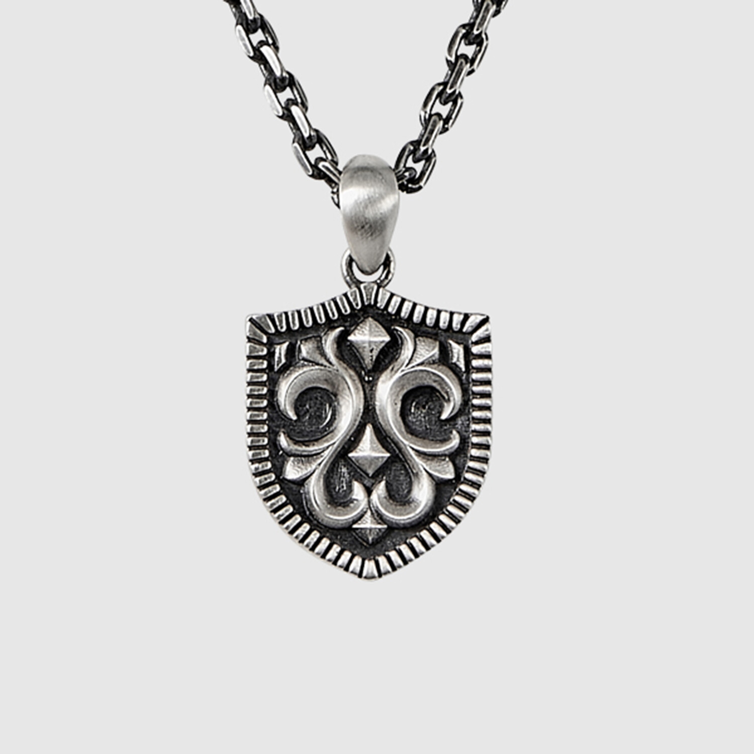 Cartouche Shield Pendant No.1 + Silver Bold Chain