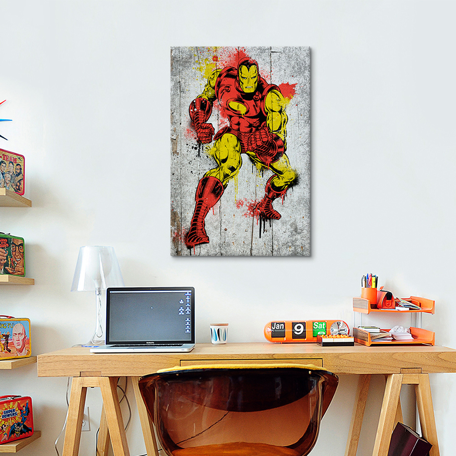 Marvel fans know their favorite universe inside and out — and every detail you love is celebrated in this dramatic Iron Man print. Featuring an amazing, abstract spray paint design, and printed on museum-quality canvas, which stands out from the wall with no need for framing, it's a high-quality and fun way to bring your fandom into your interior.