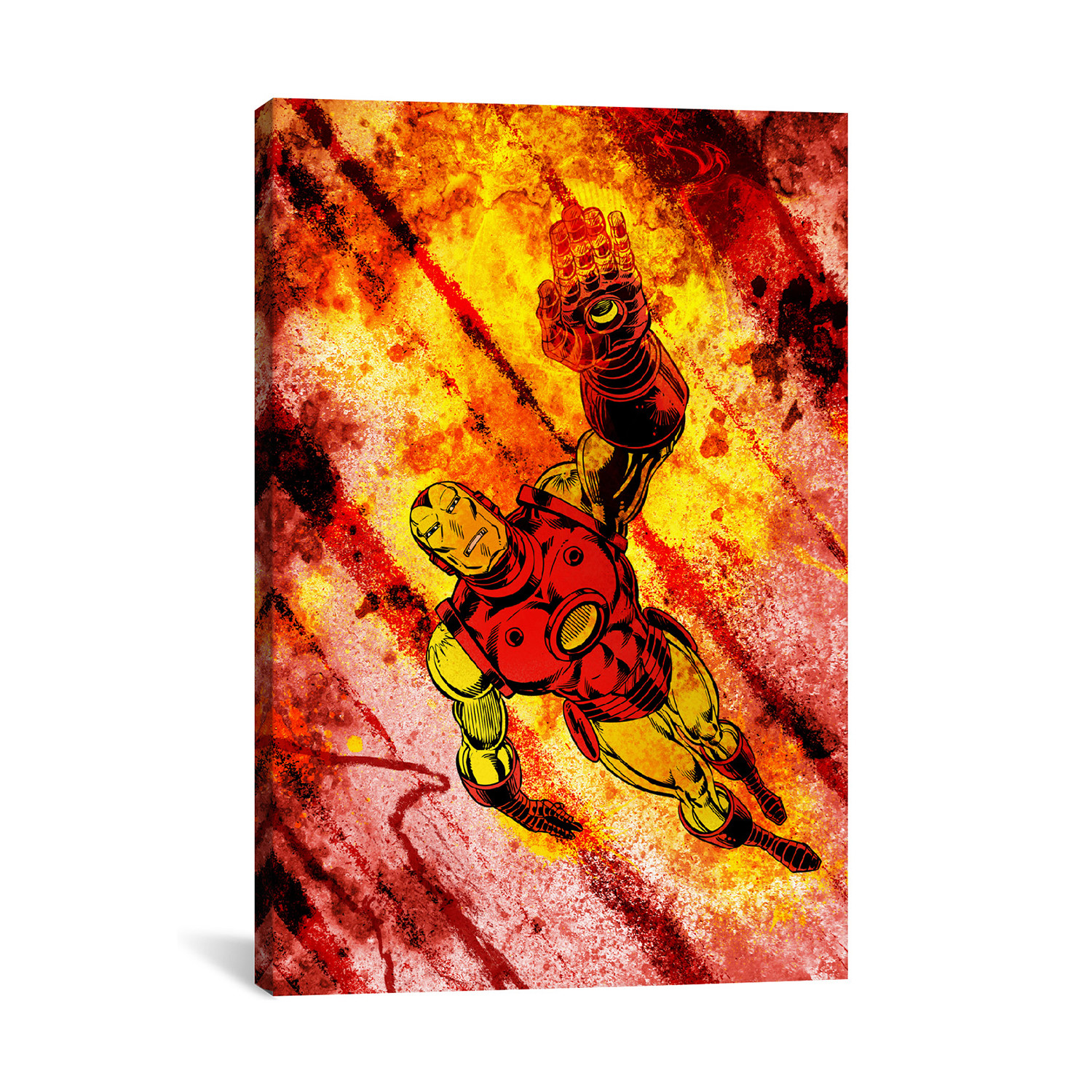 Marvel fans know their favorite universe inside and out — and every detail you love is celebrated in this dramatic Marvel Comics Iron Man Soaring Painted Grunge print. Printed on museum-quality canvas, which stands out from the wall with no need for framing, it's a high-quality and fun way to bring your fandom into your interior.