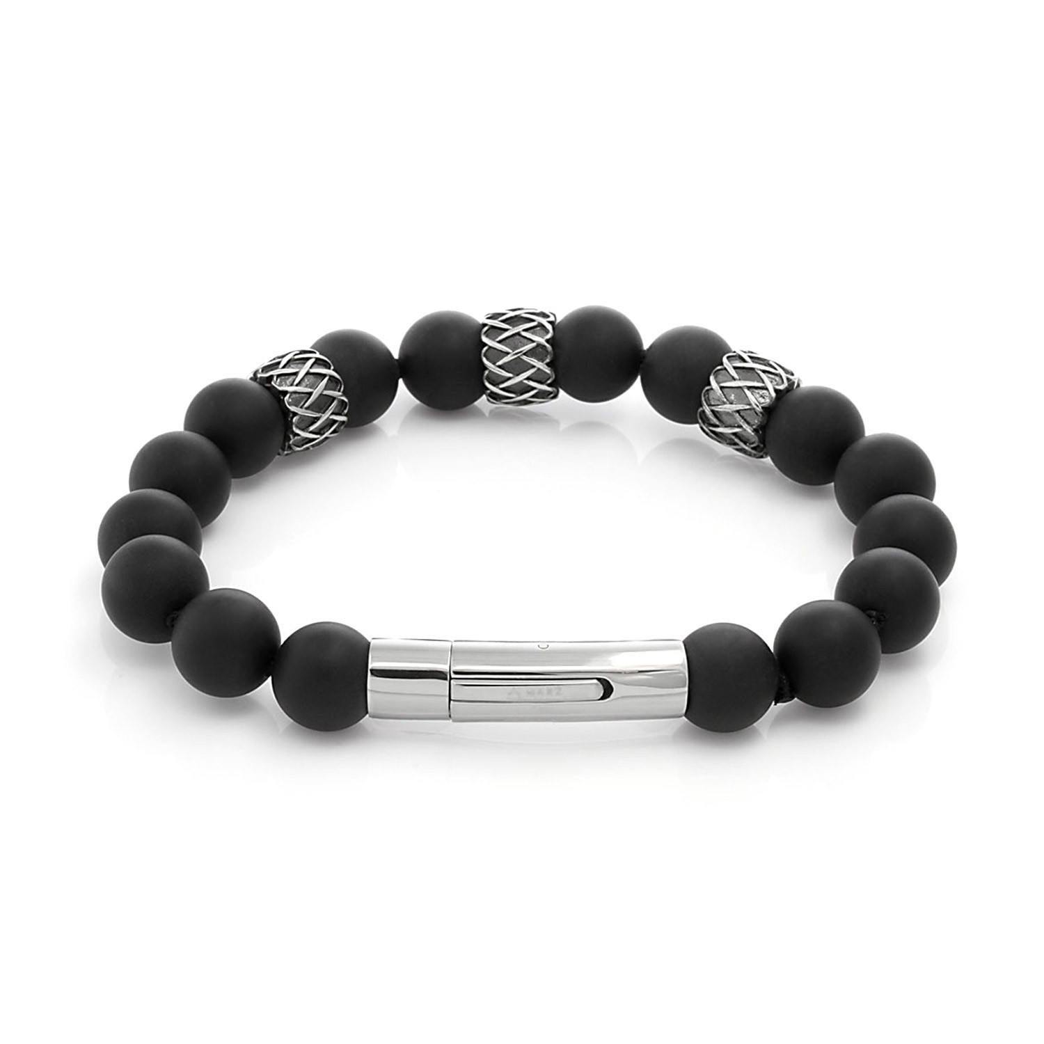 The Chain Mail's steel ID charms mimic the protective cover used by Medieval knights, offering a vintage look and feel that combines modernism with antiquity. Each of the 10mm matte ball beads fit will along side the steel ID tags to create this one-of-kind look.