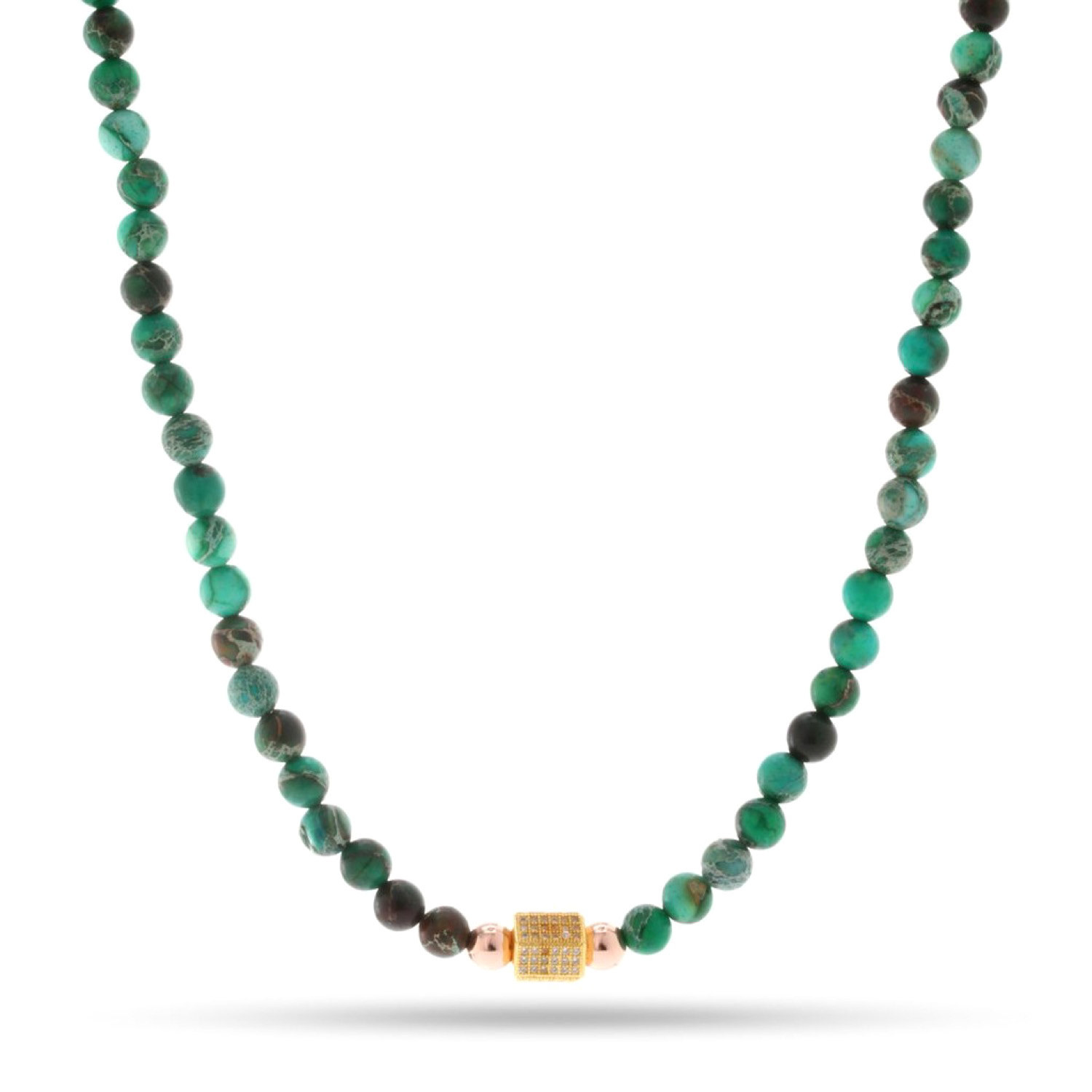 Absorbing negative energies, Malachite clears and activates your chakras while helping you stay attune to your spiritual path thanks to its 6mm beads. Meanwhile, each 14K gold plated charm uses AAA, handset stones to provide a classical look to this 26" long necklace.