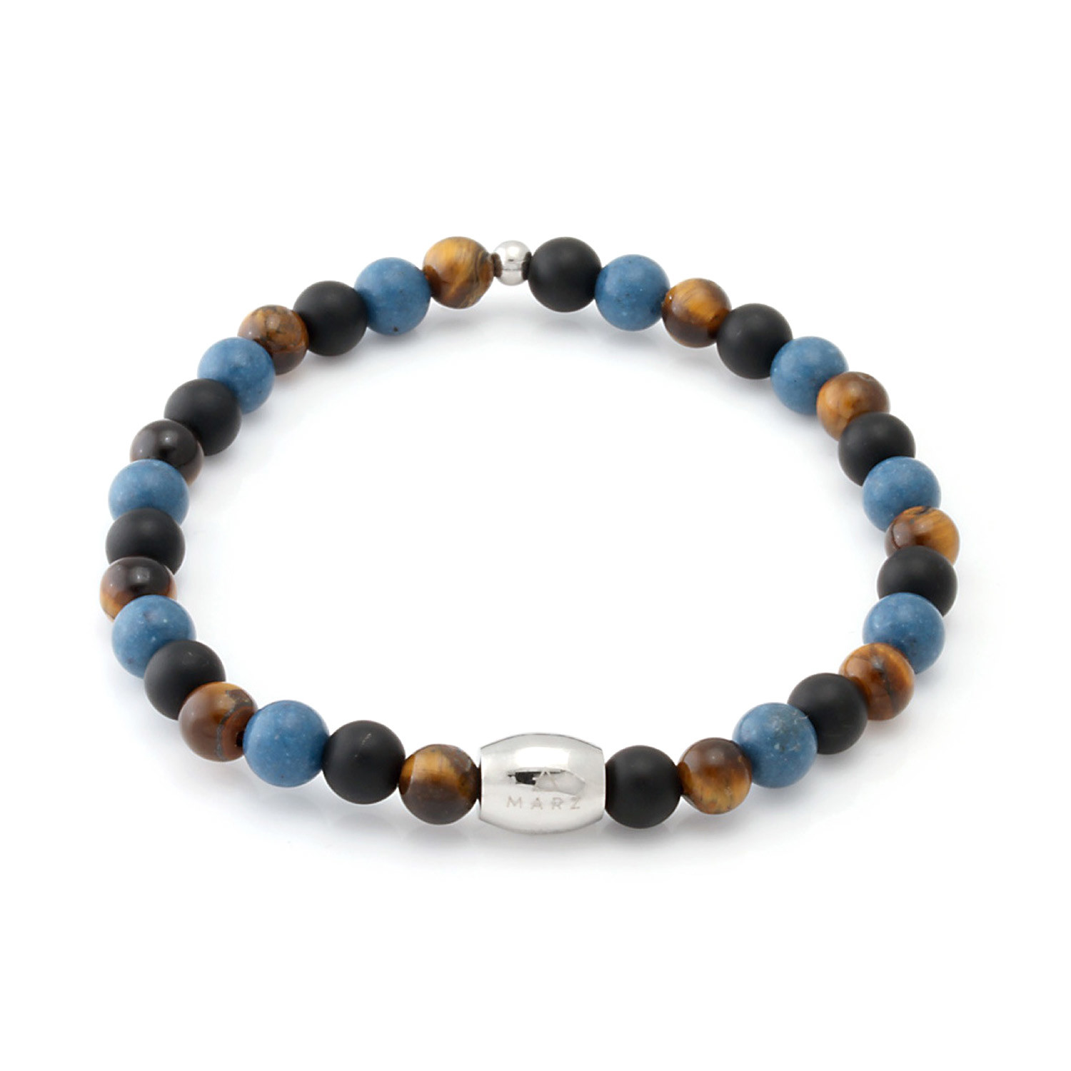 Similar to The Hodge, The Podge carries on the same tradition of design — mixing and matching popular styles like tiger-eye, matte black and lapis beads to create a colorful alternative to the classic black and silver offerings. And while the Podge maintains the same 6mm ball beads as the The Hodge, the difference is in the Marz tag fitted with this bracelet that provides a larger alternative to the dangling charm found on its predecessor. And as with all Marz bracelets, The Podge features a high-synthetic rope to hold this 8" wide bracelet together.