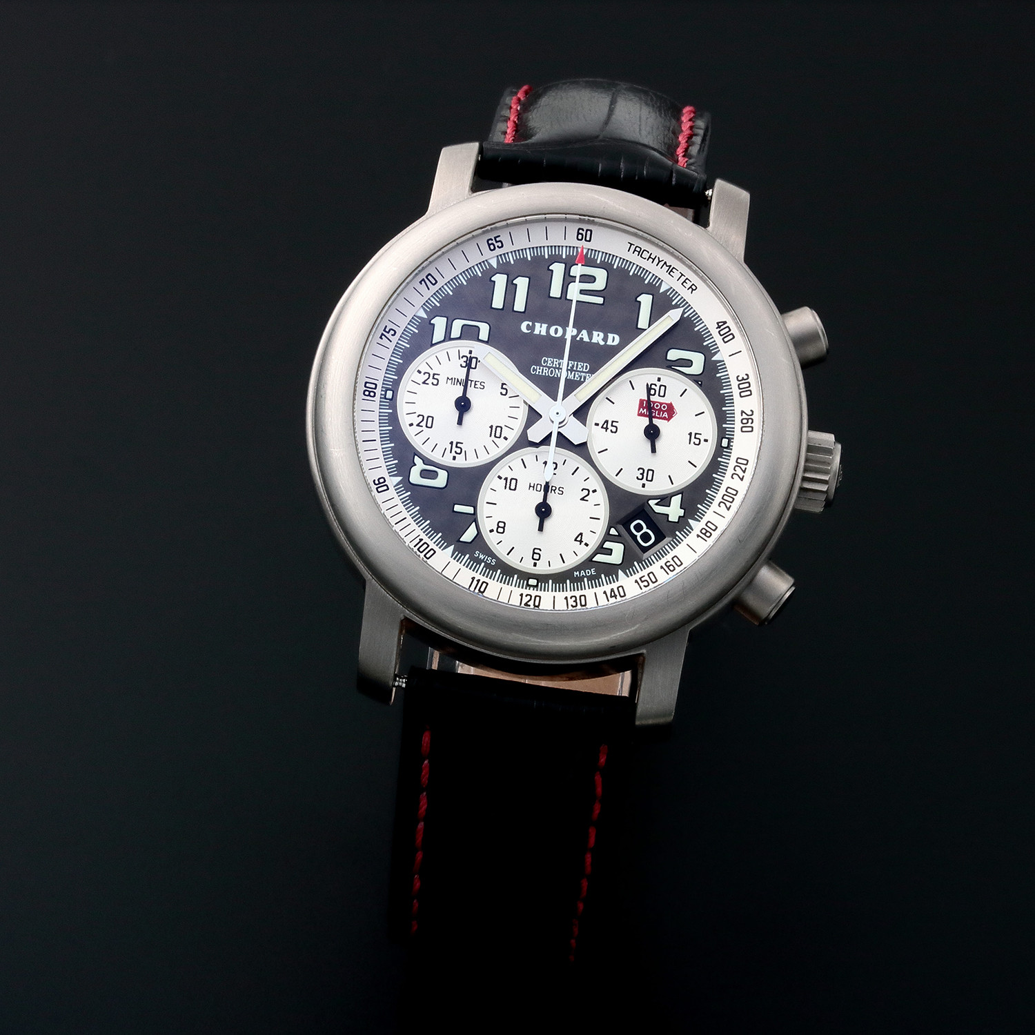 Wrap your wrist in a premium timepiece by the Swiss watchmasters at Chopard. Since 1860, they have led the way in perfecting watches and adapting them for the modern man. This Chopard Chronograph Automatic features a date and chronograph function.