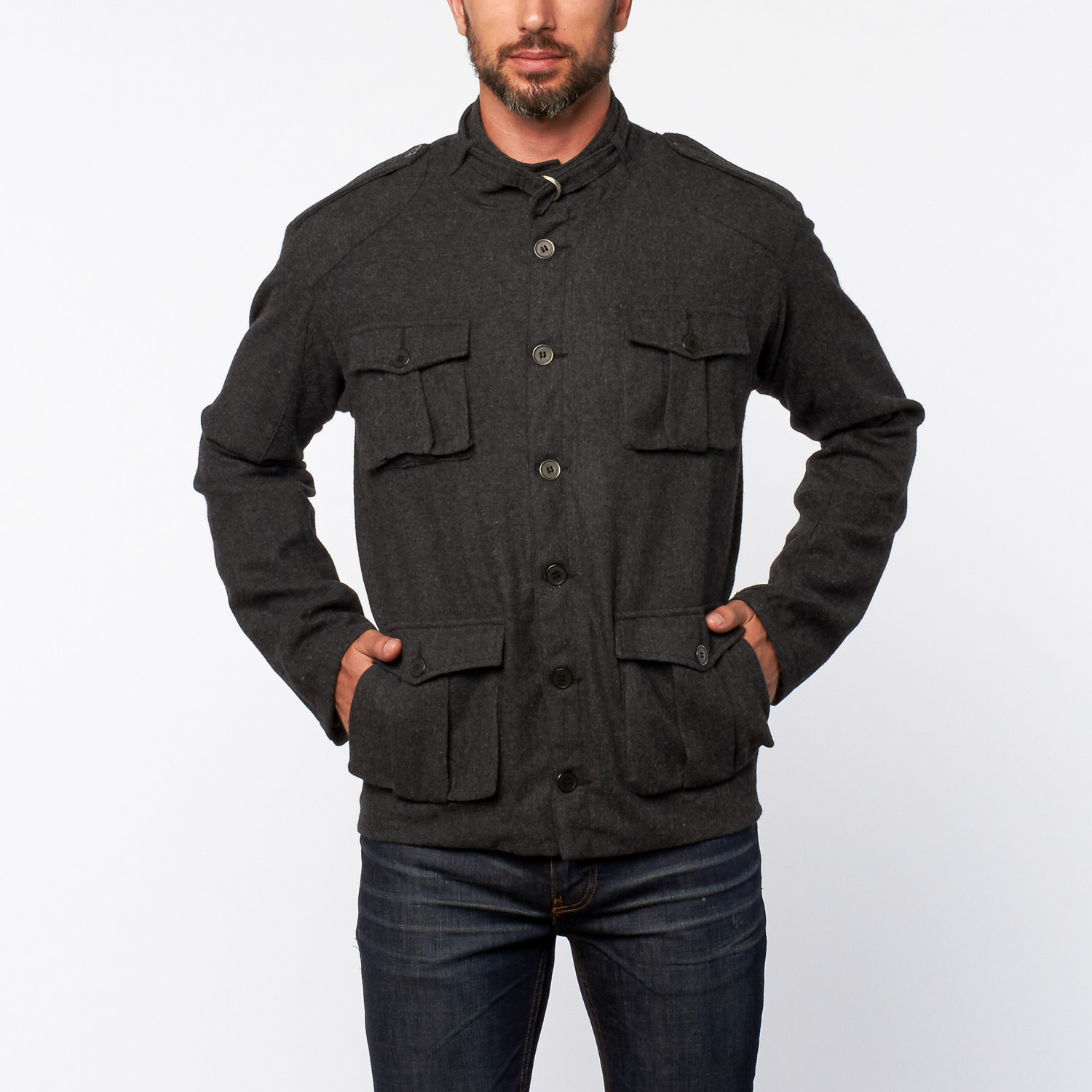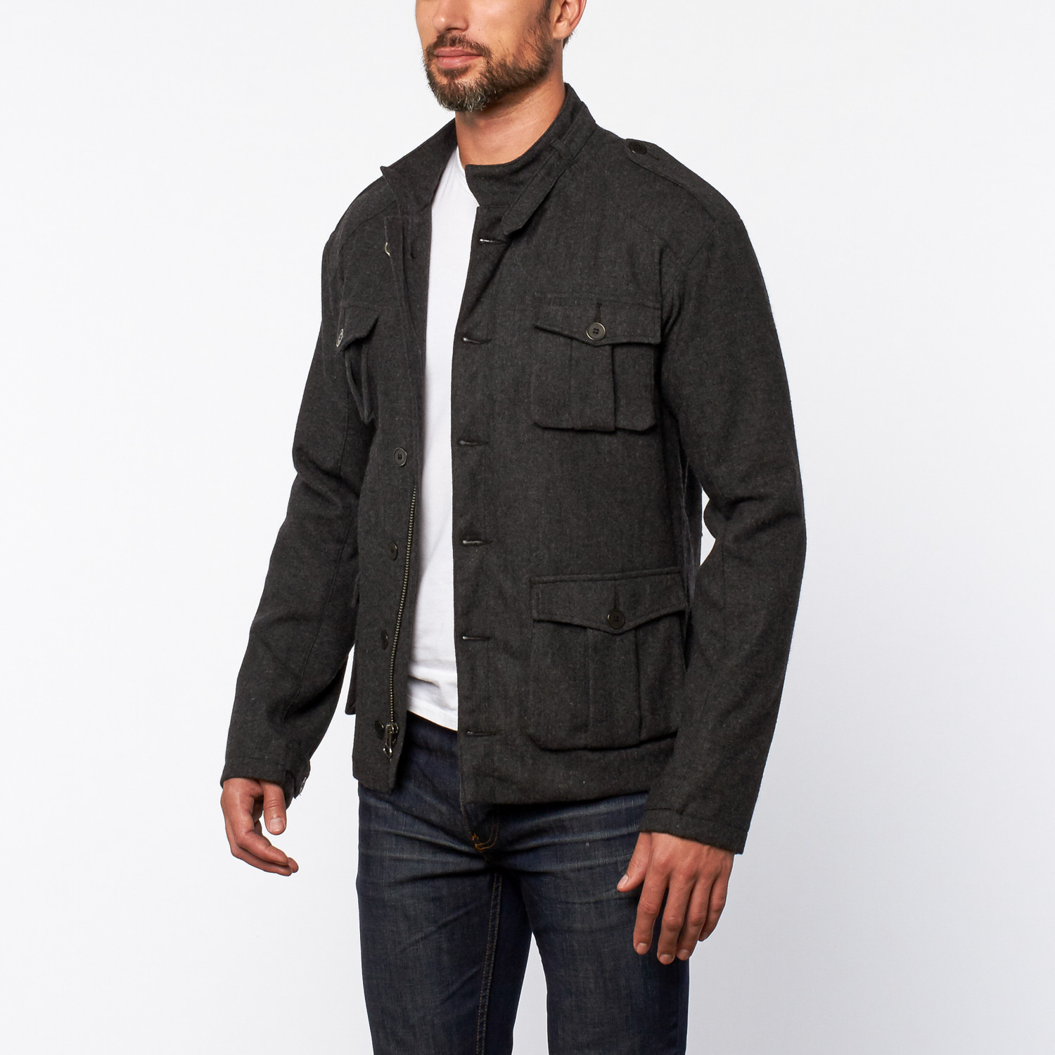 The Carline is a refined version of the classic, rugged M65 military jacket, and looks great over a t-shirt as well as a shirt and tie. Its dual zipper and Italian-made metal buttons make the Carline easy to close, while the artist-made lining offers style, warmth, and the luxurious feel of a fine sportcoat. This version is tailored from a lightweight, yarn-dyed Japanese wool.