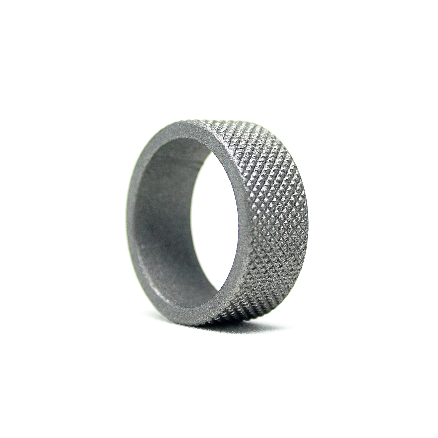The Knurl collection features a design that is seen on all types of guns across history. Regularly found on barrels, hand grips, and scopes, it's one of the oldest patterns in gun making, prized for aesthetics as well as function. Each ring in this series is handmade, cast in steel, and finished with a Cerakote gun coating.