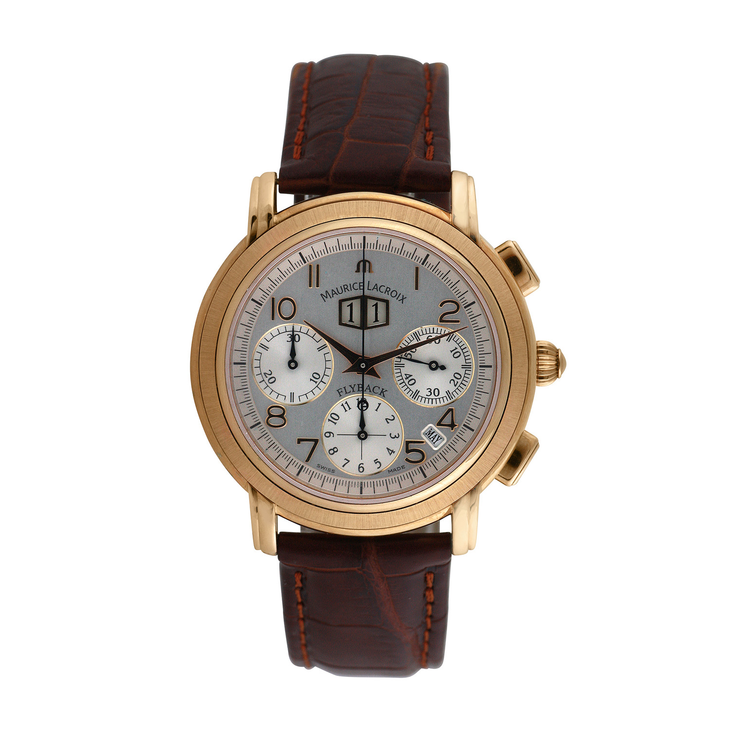 The timepieces in the Masterpiece Collection are the perfect synthesis of Maurice Lacroix know-how and are anchored in an urban, dynamic and elegant 21st century. This collection spearheads the brand, and, its interpretation is a wonderful illustration of what Maurice Lacroix has been specializing in for many years — with this one combining 18K gold and brown leather to beautiful effect.