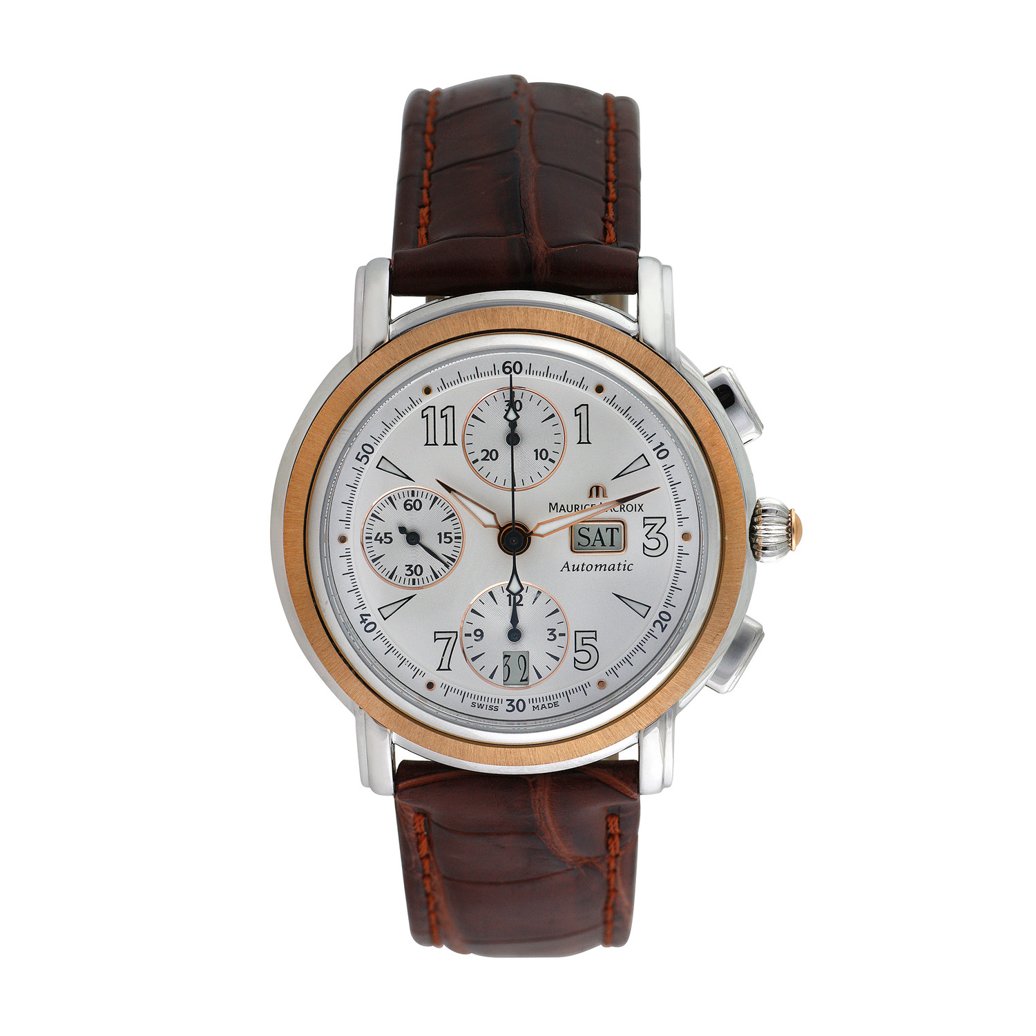 The timepieces in the Masterpiece Collection are the perfect synthesis of Maurice Lacroix know-how and are anchored in an urban, dynamic and elegant 21st century. This collection spearheads the brand, and, its interpretation is a wonderful illustration of what Maurice Lacroix has been specializing in for many years — with this one combining stainless steel, 18K gold, and brown leather to beautiful effect.