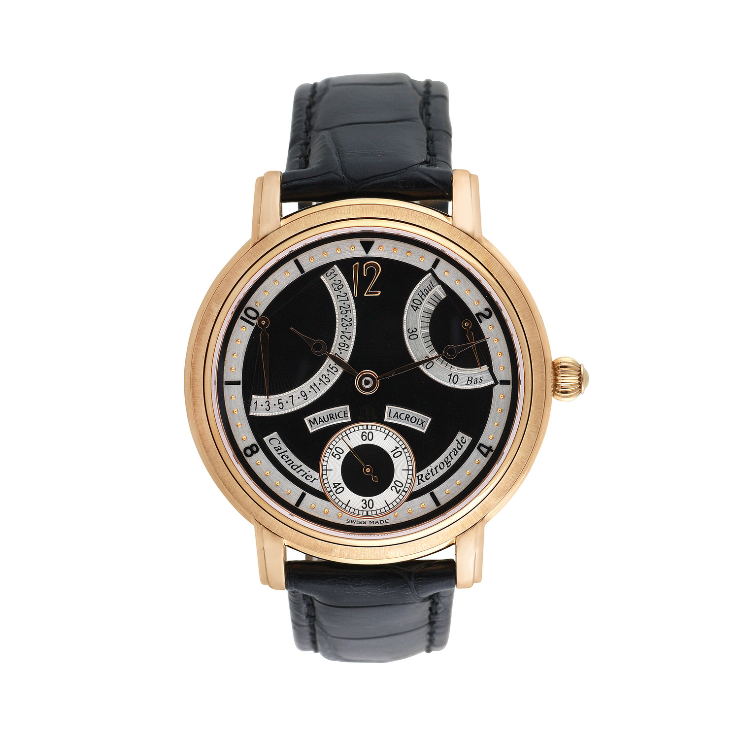 The timepieces in the Masterpiece Collection are the perfect synthesis of Maurice Lacroix know-how and are anchored in an urban, dynamic and elegant 21st century. This collection spearheads the brand, and, its interpretation is a wonderful illustration of what Maurice Lacroix has been specializing in for many years — with this one combining 18K gold and brown leather to beautiful effect.