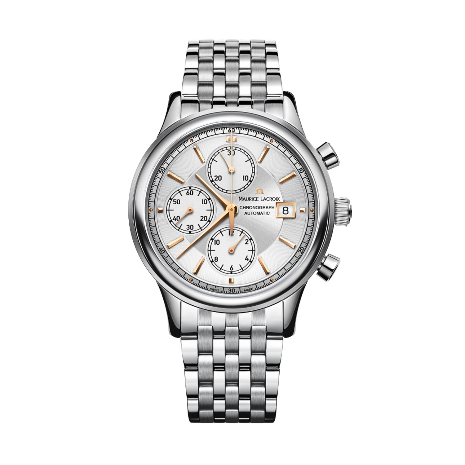 Transcendent design and first-class handiwork characterize the quality of the Swiss watchmaker's art in this timeless timepiece. The Maurice Lacroix Les Classiques collection is a truly a distillation of all the elegance of traditional watchmaking. The very symbol of authenticity, such craft takes the idea of harmony and turns it into a true discipline, a discipline embraced wholeheartedly by this Maurice LaCroix Les Classiques Chronograph Automatic.
