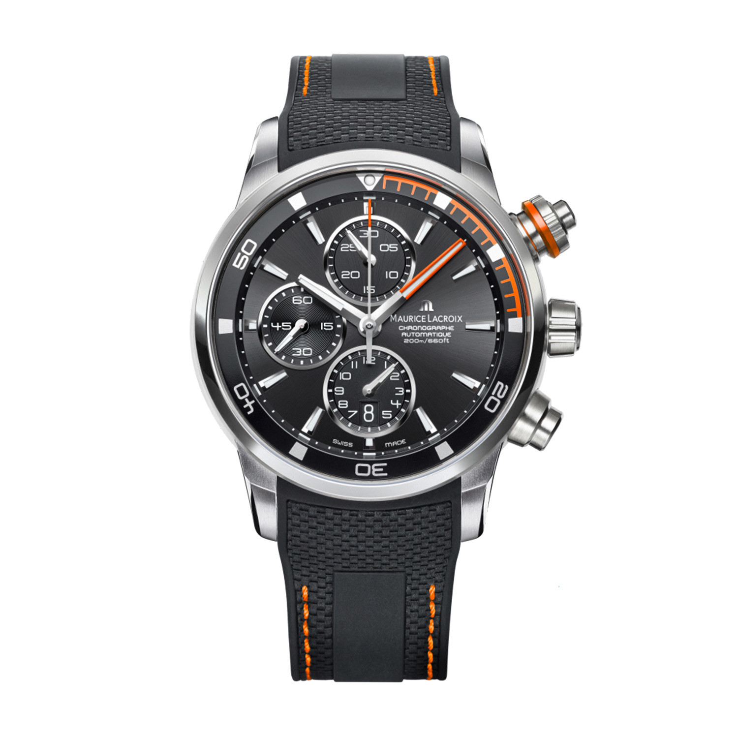 The Pontos collection brilliantly combines Swiss watchmaking traditions and technical mastery with modern design. It gives contemporary shape to the passage of time, furnishing the mechanical precision it deserves. The Maurice Lacroix Pontos S Chronograph Automatic offers chronograph and stopwatch functions to help you master time.