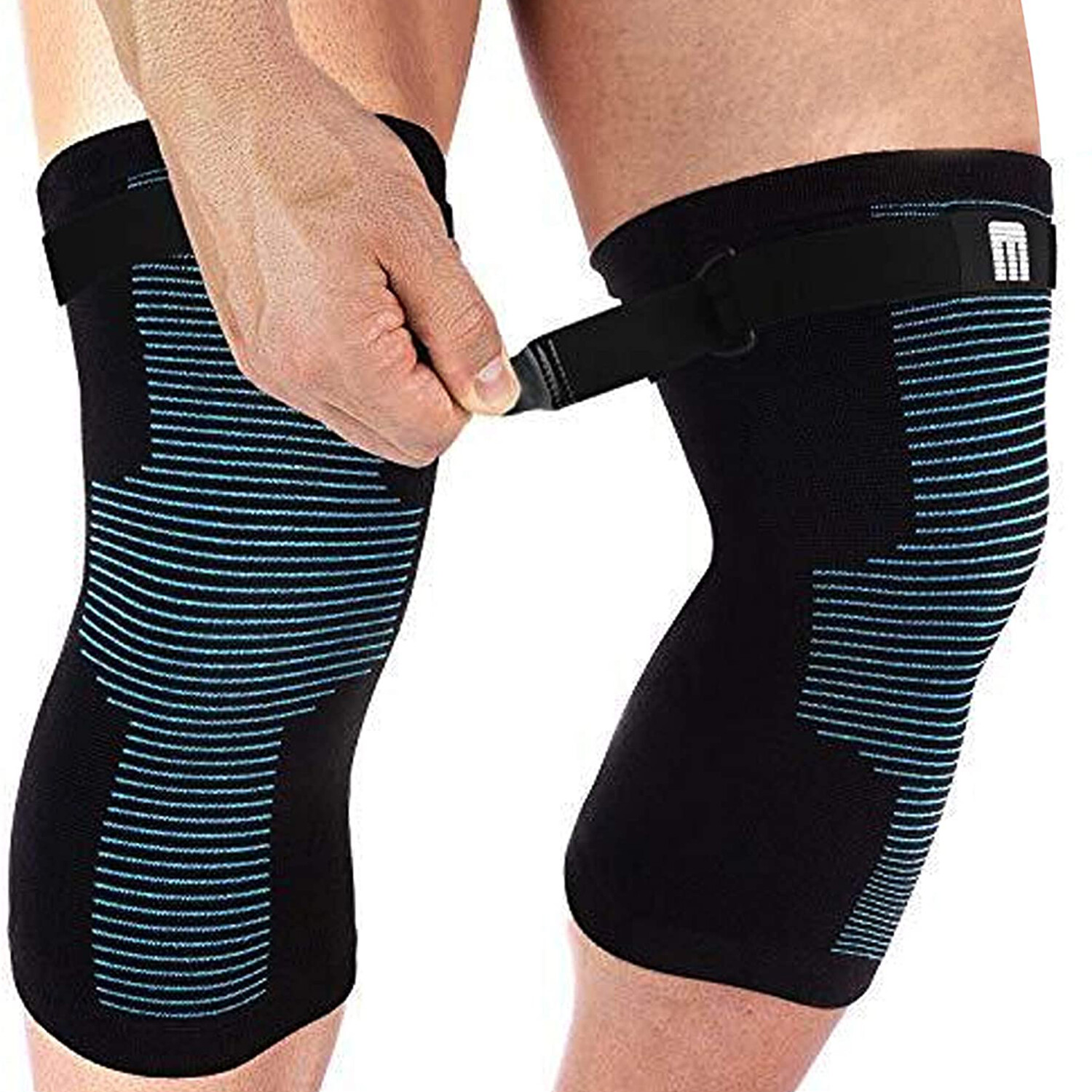 Thin, soft, flexible, and comfortable, the MAVA Compression Knee Sleeves with Strap are designed for basic compression—keeping the knees warm and promoting blood flow, joint pain relief, and increased range of motion.