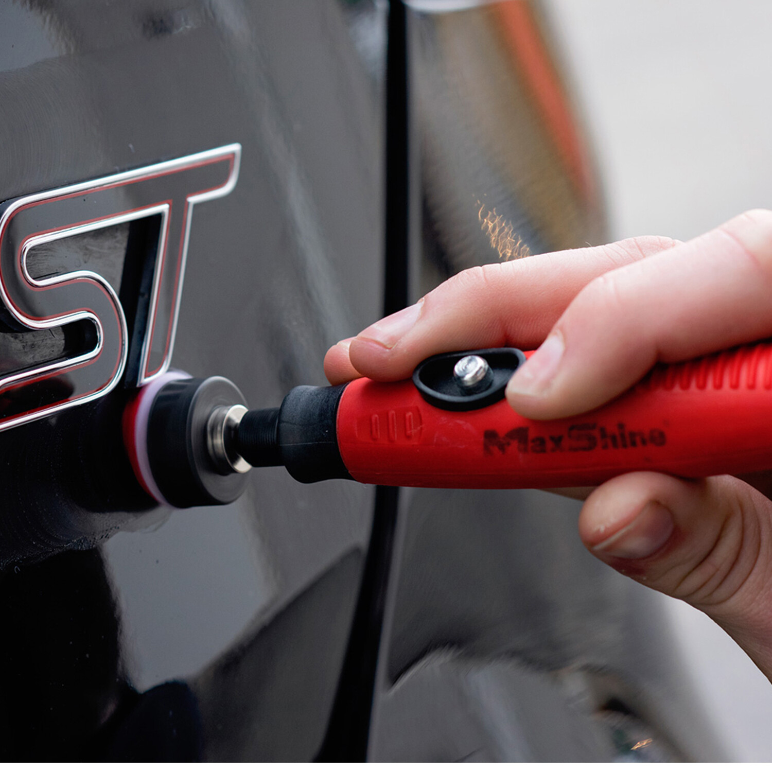 The Mini Polishing System works with Maxshine Rotary Polishers (not included) to effectively reach areas where many polishers can’t. This compact polishing kit is the perfect for polishing intricate areas inside and outside of your vehicle, including detailed work on car headlamps, fog lights, brake lights, door handles, emblems, scratched glass surfaces, interior console panels, and other small areas.