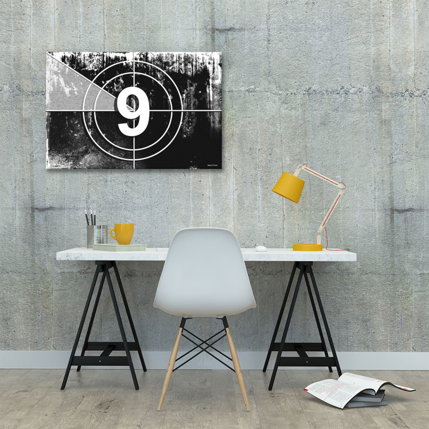 The Action poster is a simple and elegant reference to the Golden Era of Hollywood filmmaking. With it's countdown timer immortalized at 9 seconds, it's a classy, nostalgic image that dresses up any home or office space. Unlike cheap posters and paper prints that require additional framing, Giclée canvas artwork offers the texture, look and feel of fine-art paintings. This artwork is crafted in the US with artist-grade canvas. The pieces are professionally hand-stretched and stapled over North American pinewood bars in the gallery wrap style, a method utilized by artists to present artwork in galleries. Fade-resistant archival inks guarantee perfect color reproduction that remains vibrant for decades even when exposed to strong light. Add brilliance in color and exceptional detail to your space with this contemporary and uncompromising style.