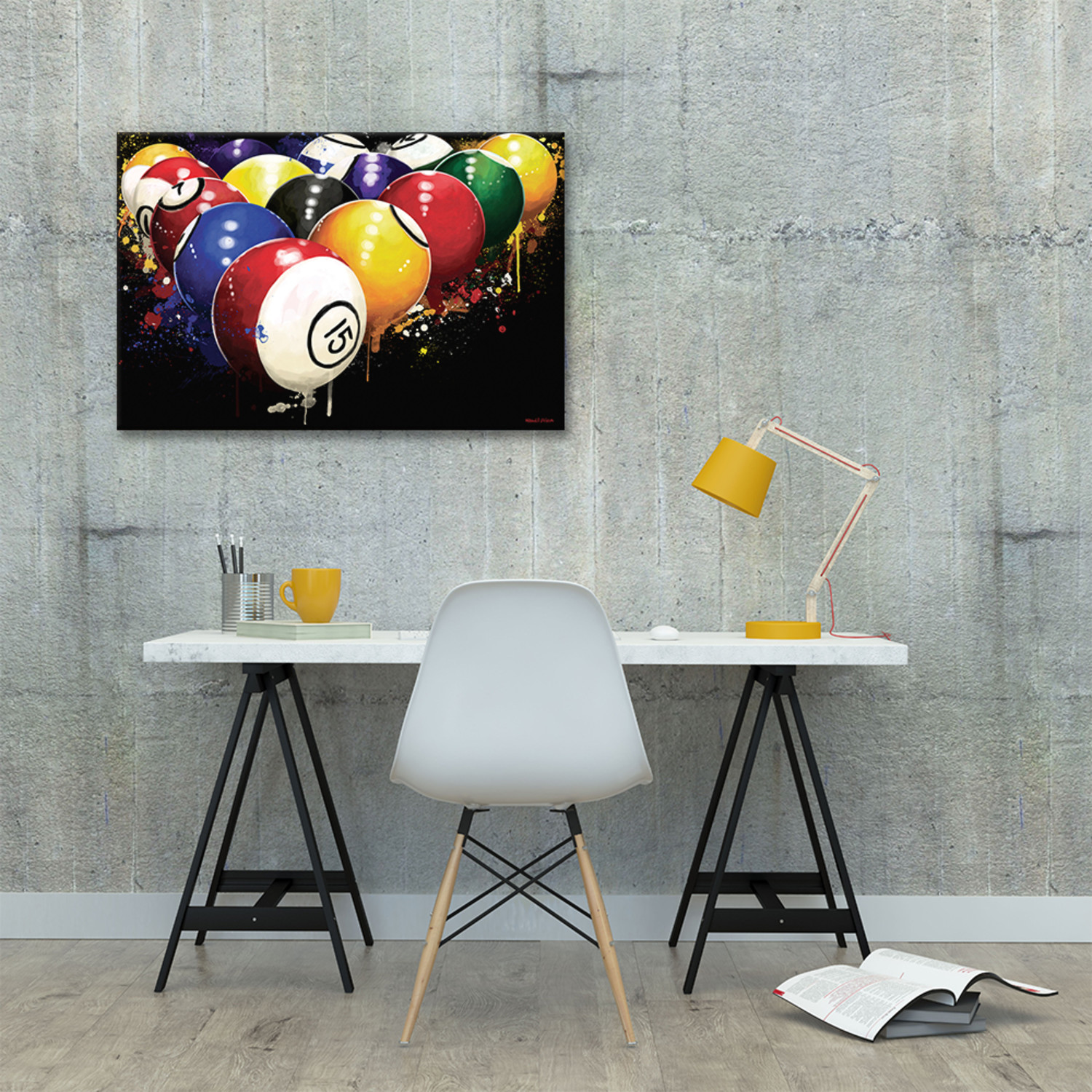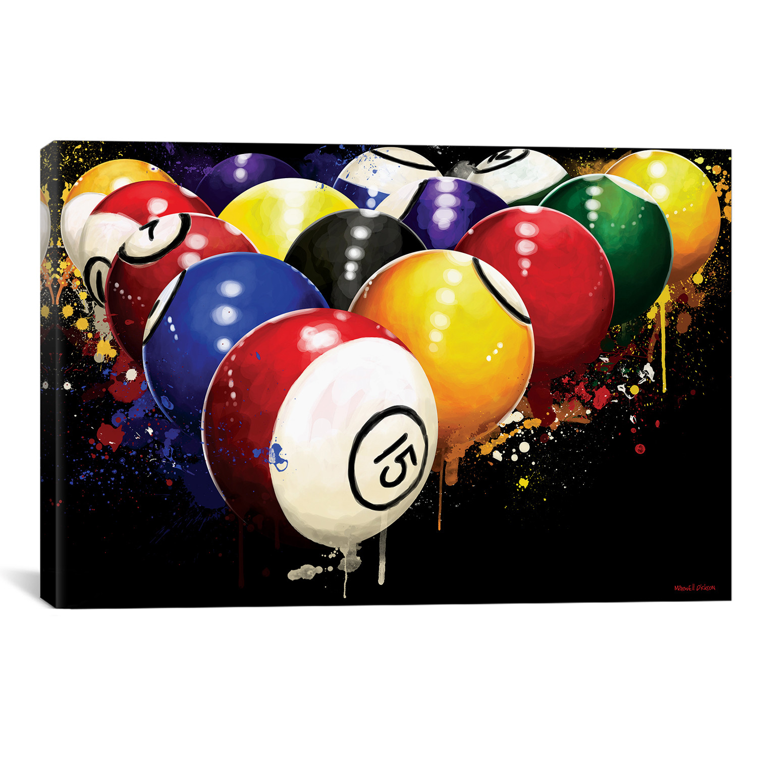 For the billiards buff in your life, Rack 'Em is a fun and funky print that livens up any den. Unlike cheap posters and paper prints that require additional framing, Giclée canvas artwork offers the texture, look and feel of fine-art paintings. This artwork is crafted in the US with artist-grade canvas. The pieces are professionally hand-stretched and stapled over North American pinewood bars in the gallery wrap style, a method utilized by artists to present artwork in galleries. Fade-resistant archival inks guarantee perfect color reproduction that remains vibrant for decades even when exposed to strong light. Add brilliance in color and exceptional detail to your space with this contemporary and uncompromising style.