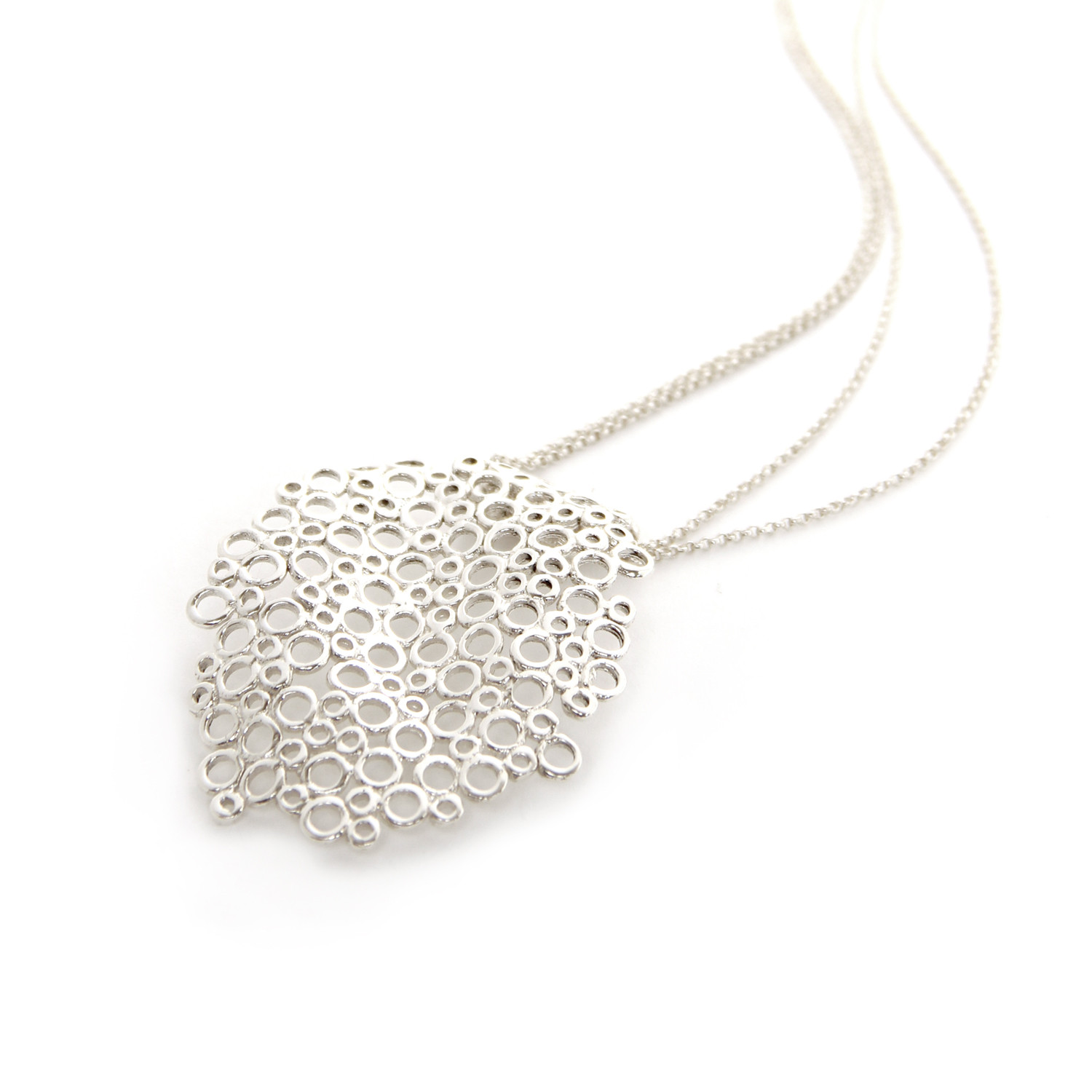 The Hive Necklace is a refined necklace inspired by all the tiny holes that form one silver, glistening honeycomb. Long and elegant, the lobster claw fastener and braided chain suspend the chic honeycomb pendant. The silver has been hand polished to a beautiful bright luster that you'll love to stare at as it shines.