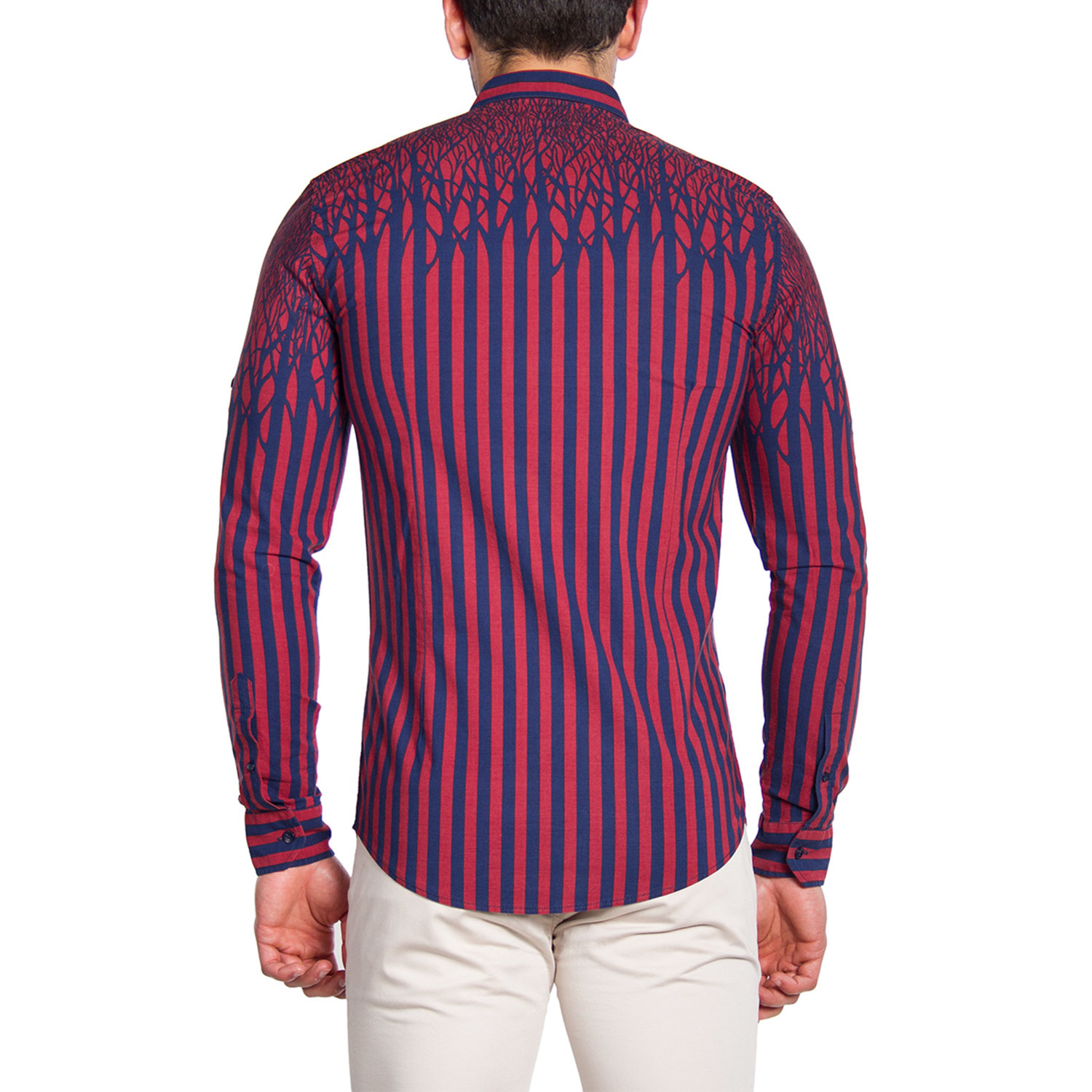 Button-Down Shirt // Red + Dark Blue Trees