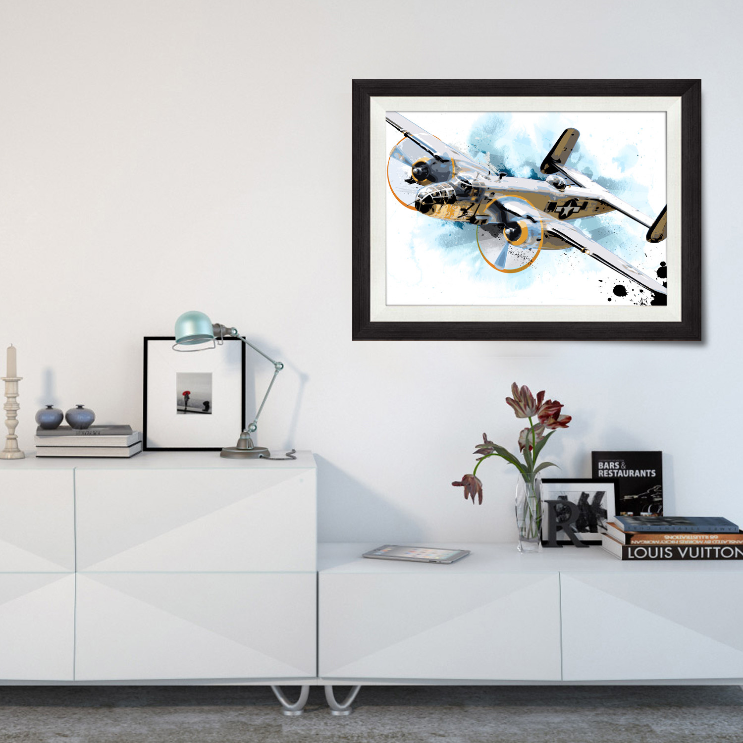 This colorful fine art print of the World War II era B-25 Mitchell bomber plane would make a bold, statement in any aviation fan’s home or office. It's printed on premium quality, acid-free matte paper with brilliant high-definition inks.