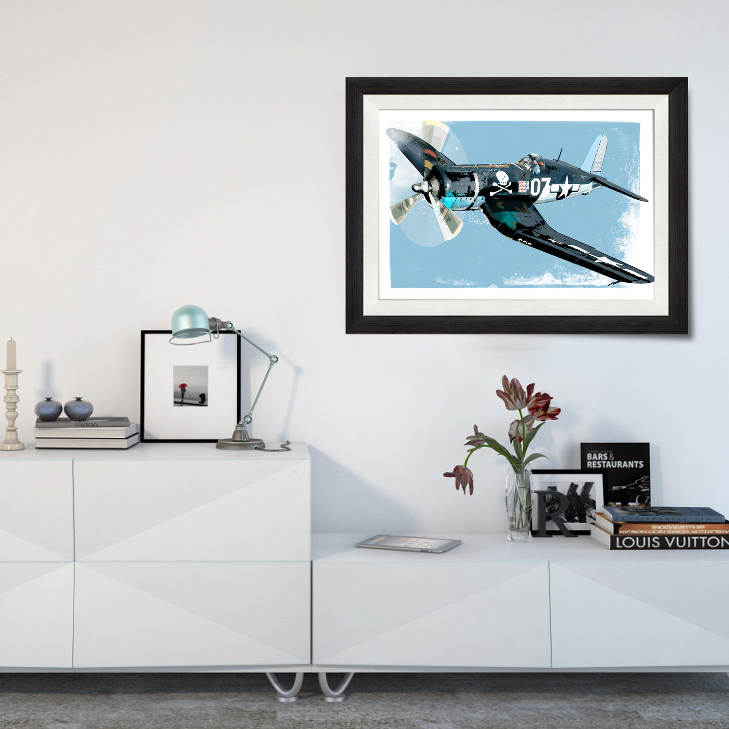 This colorful fine art print of a World War II era F4U Corsair fighter plane would make a bold, statement in any aviation fan’s home or office. It's printed on premium quality, acid-free matte paper with brilliant high-definition inks.