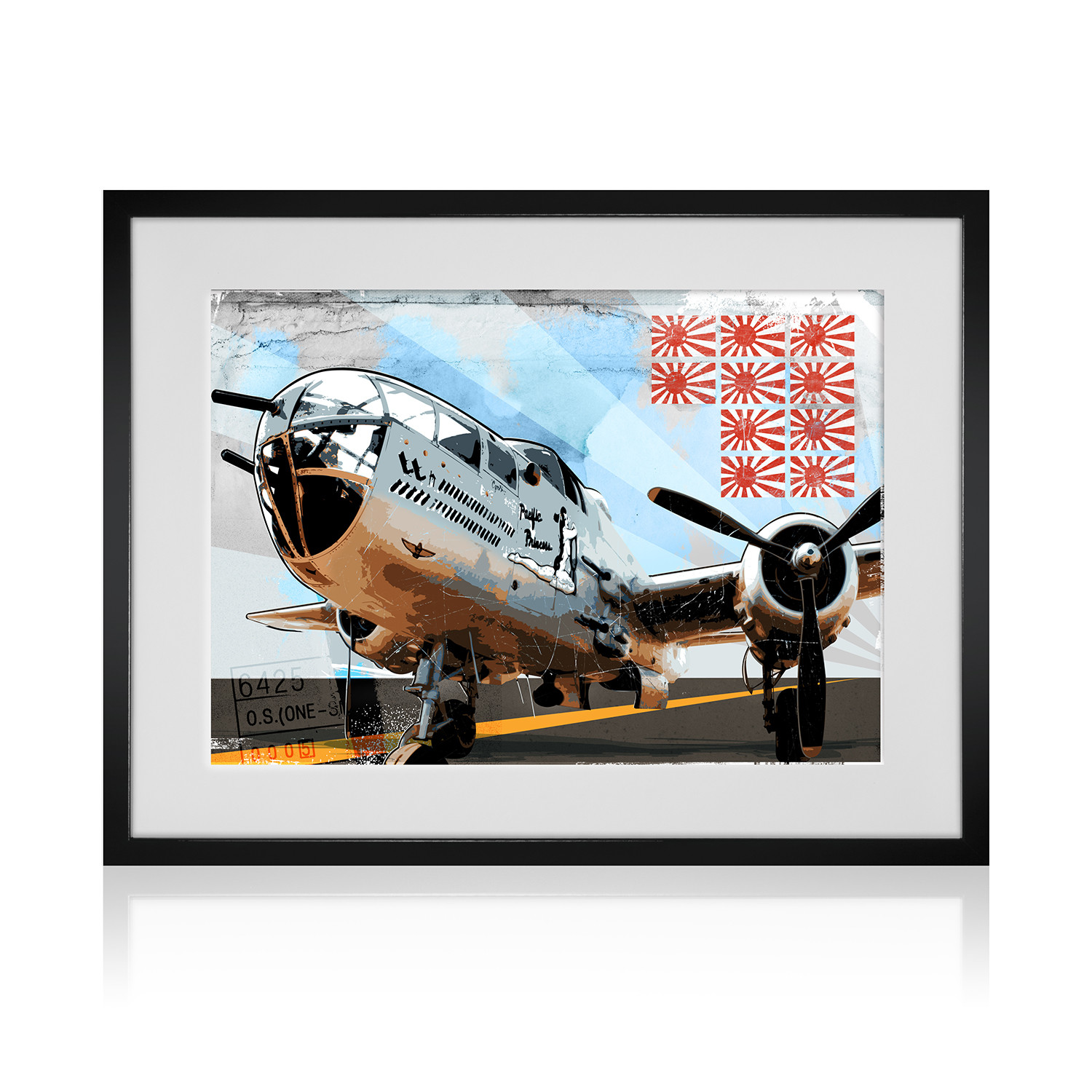 This colorful fine art print of the "Pacific Princess" — a World War II era B-25 bomber — would make a bold, Pop Art statement in any aviation fan’s home or office. It's printed on premium quality, acid-free matte paper with brilliant high-definition inks.