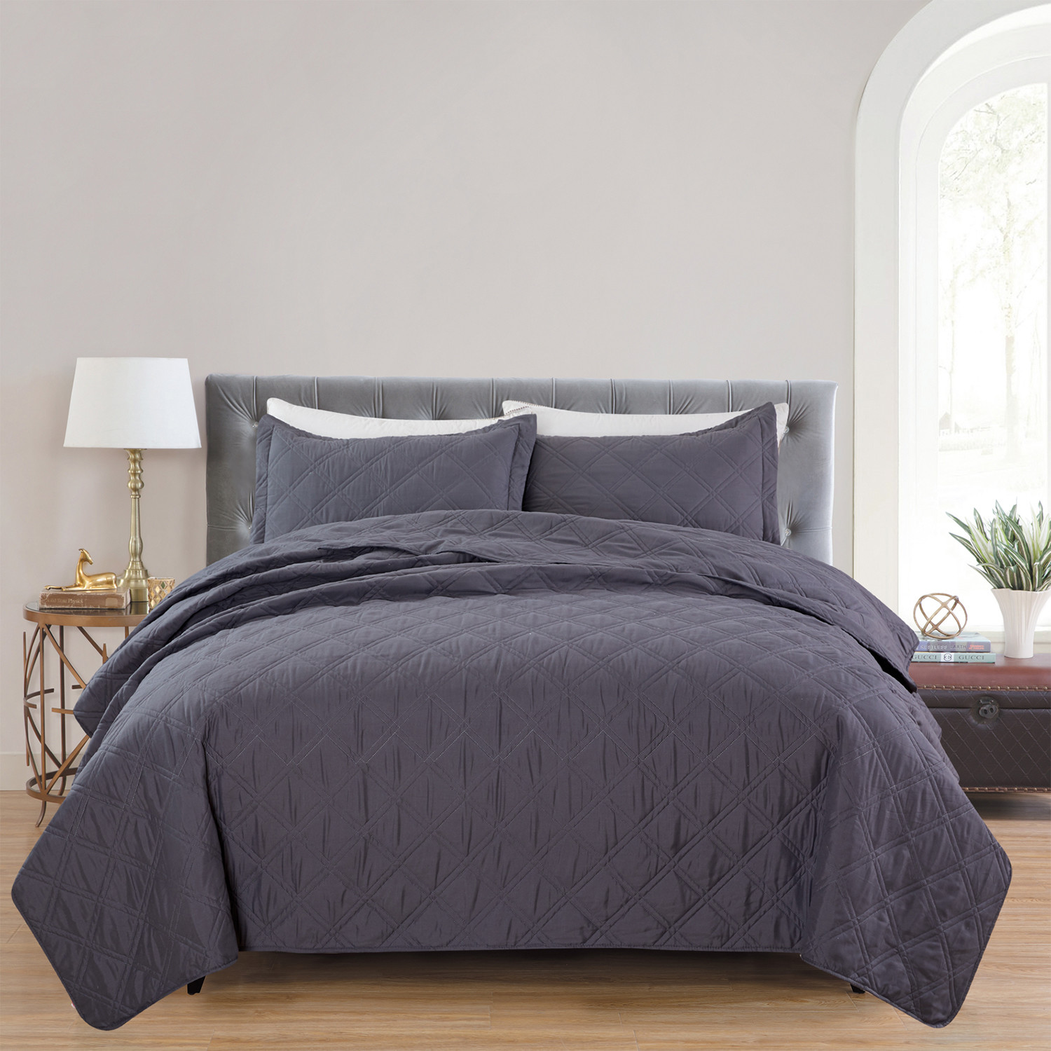 Christopher Knight Collection Double Diamond Quilt Set // Charcoal