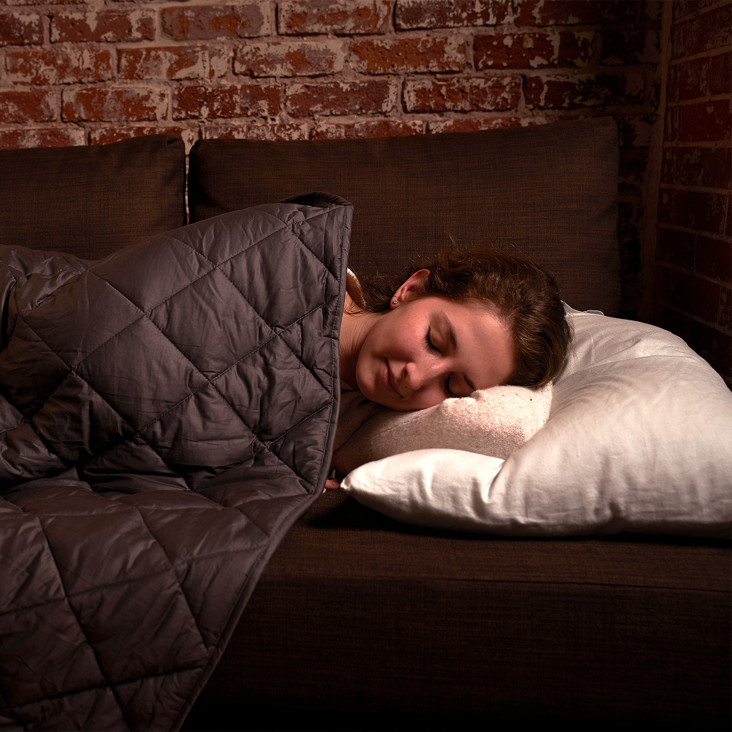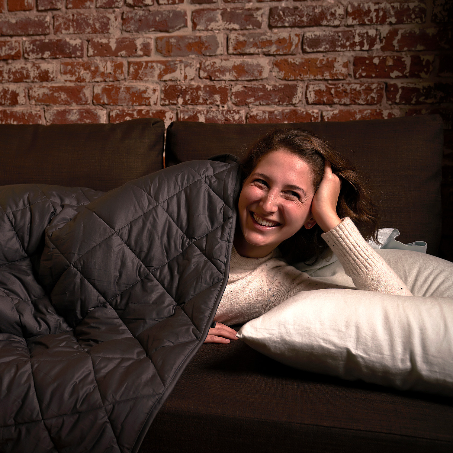 This Weighted Throw is filled with thousands of non-toxic, hypoallergenic glass beads, creating a light but firm hugging sensation that comforts, provides restful sleep, and may help reduce stress. The double boxed, quilted, 100% Cotton outer shell is ultra soft and supremely comfortable.