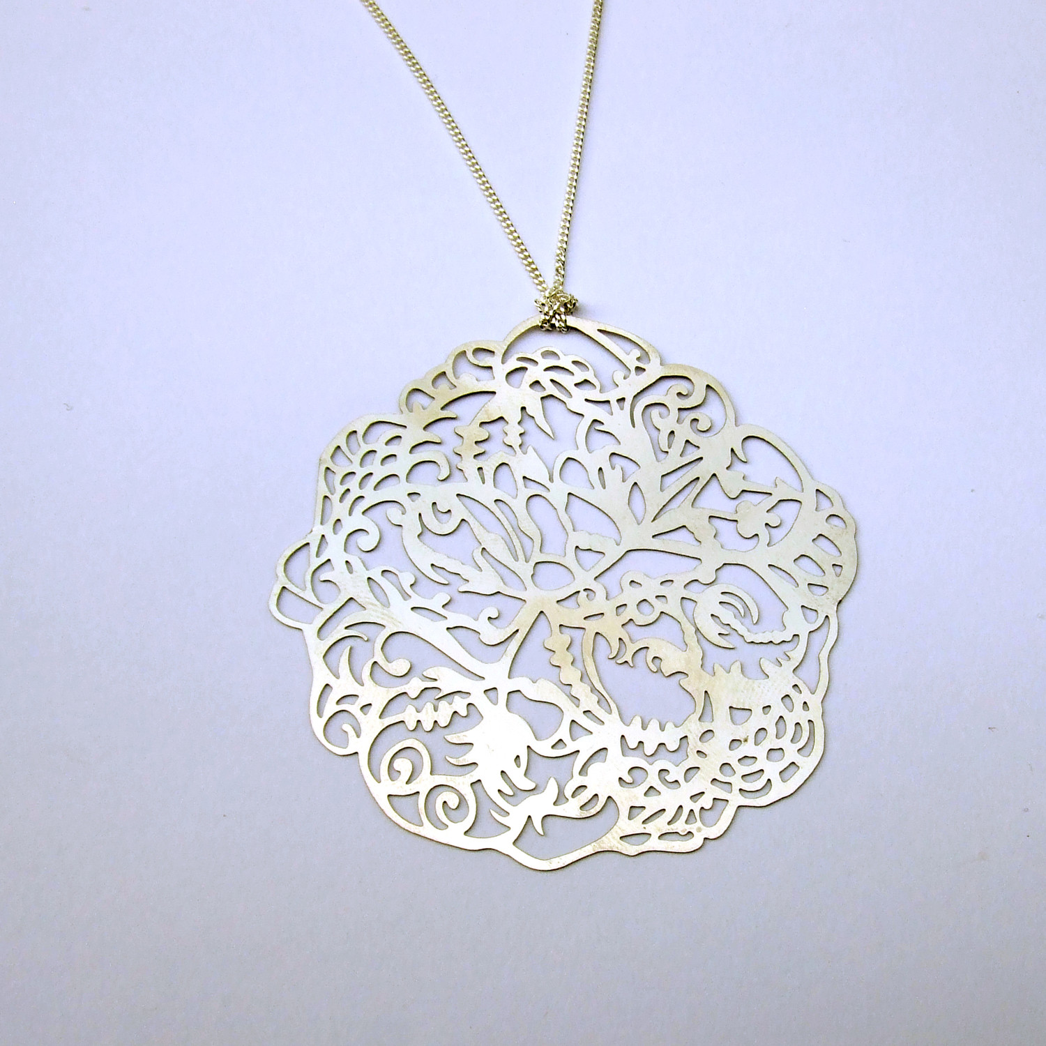 Pop-Out Jewelry is a do-it-yourself kit that comes with everything you need to transform the graphic shape into a piece of wearable art. By popping the shape out of the metal card and hanging it on the enclosed chain, you will turn organically-shaped metal into jewelry. The pieces are so lightweight that 2 or more pieces can be layered together and worn as one pendant, allowing for even more individual expression.