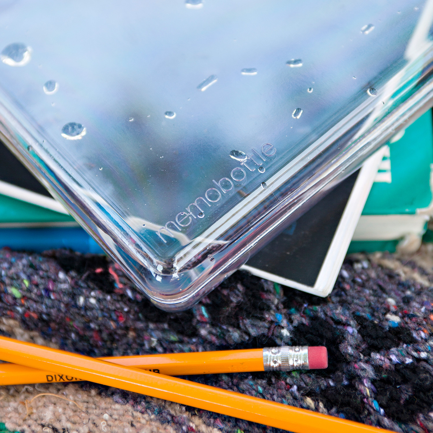 Resembling the shape of a piece of paper, the Memobottle™ fits where other bottles don’t. When full, the Memobottle™ takes on the dimensions of the A6 international paper size, allowing it to conveniently slide into your carry bag alongside your laptop, books and other belongings.