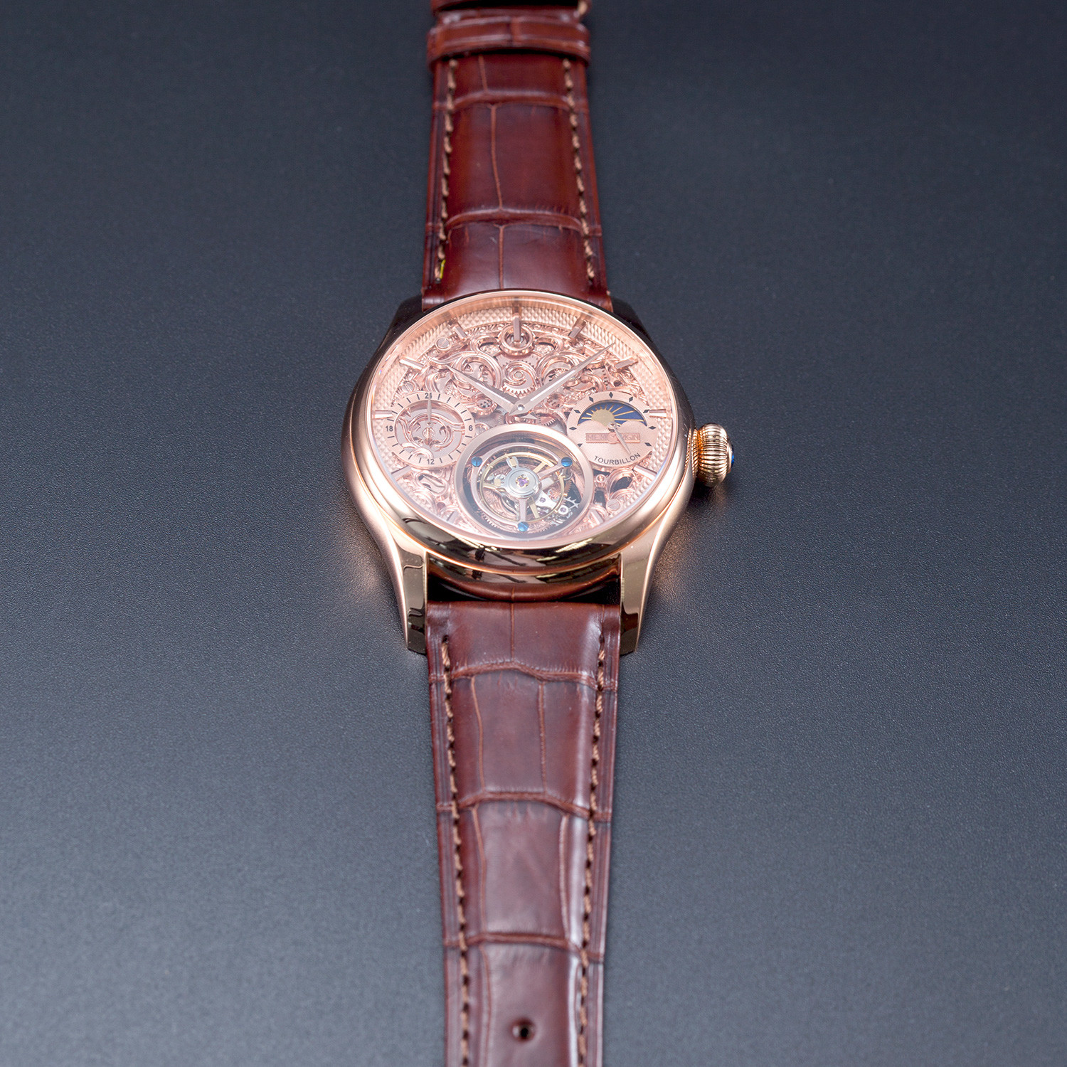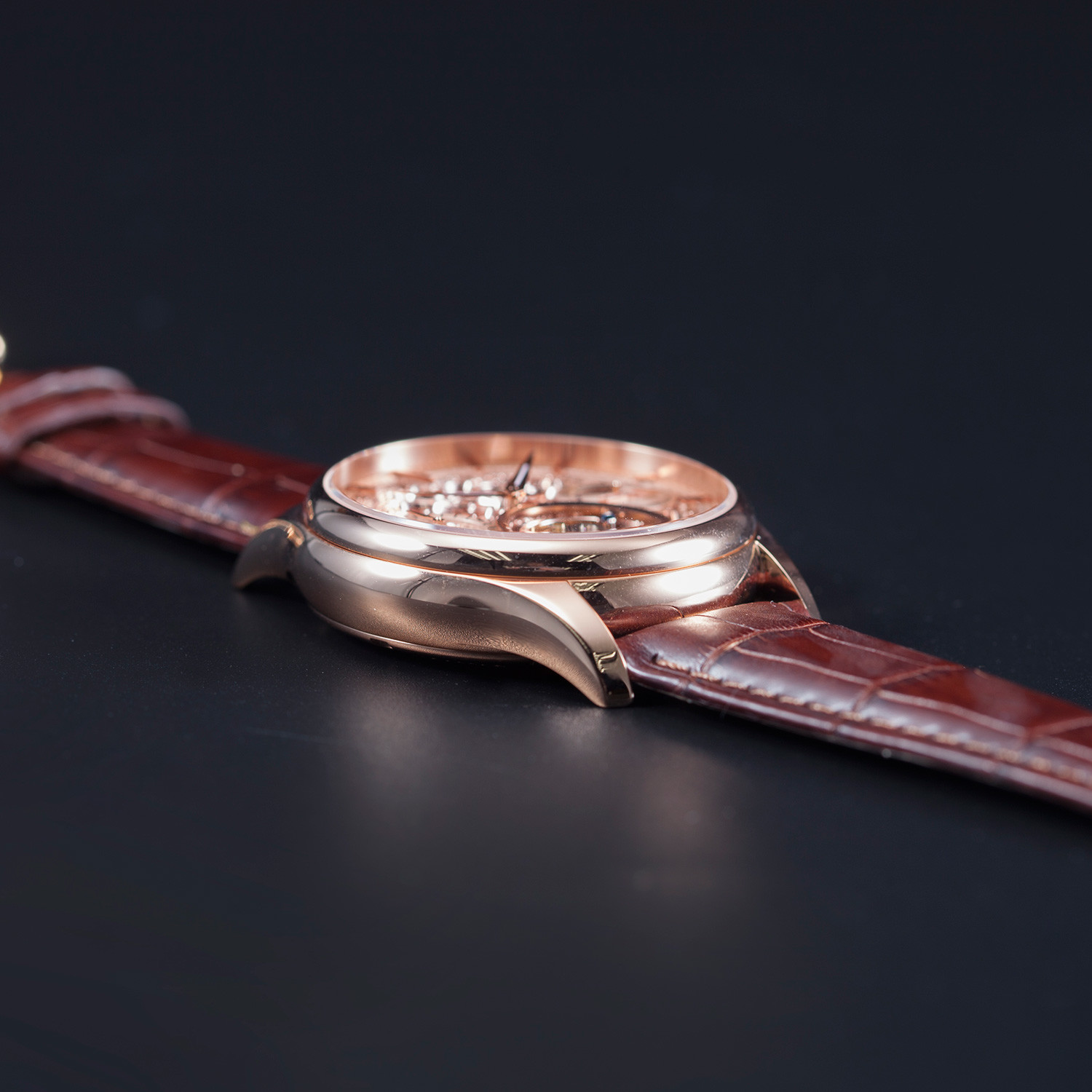 Memorigin watches are renowned for using a semi-flying Tourbillon with abbreviated carriage for the escapement wheel and pallet fork. This Auspicious Plus Watch is a fully-skeletoned model which showcases every component in total clarity. The Auspicious Series merges simple, elegant Western design with Asian-inspired top carving craftsmanship; the clouds have represent hope and faith in the eastern culture. This exquisite timepiece reveals the beauty that occurs when both worlds collide.
