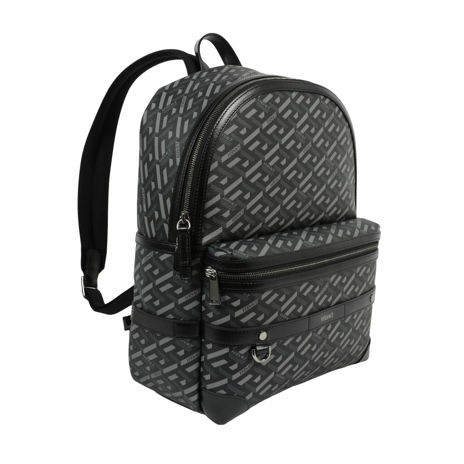 Versace // Coated La Greca + Vitello Canvas Backpack // Black + Gray
