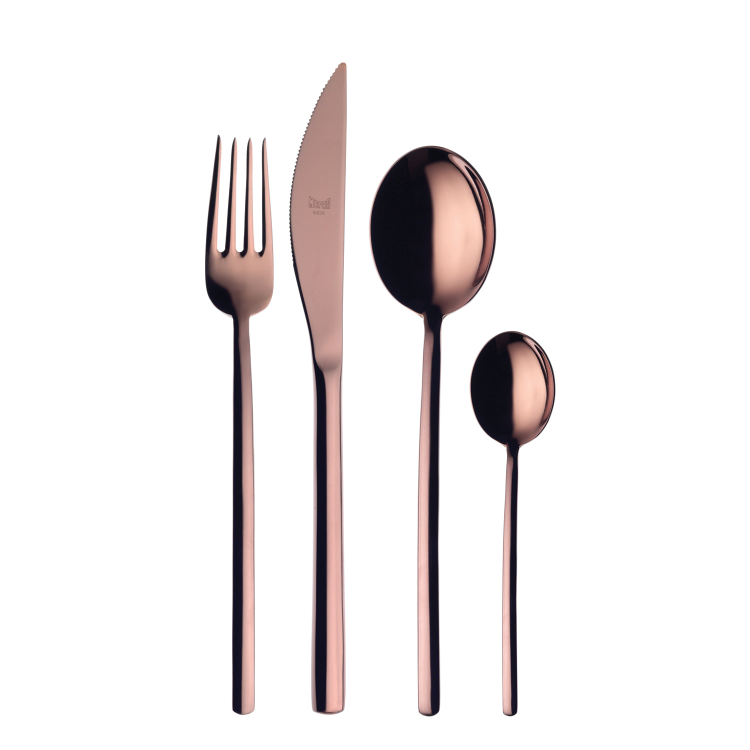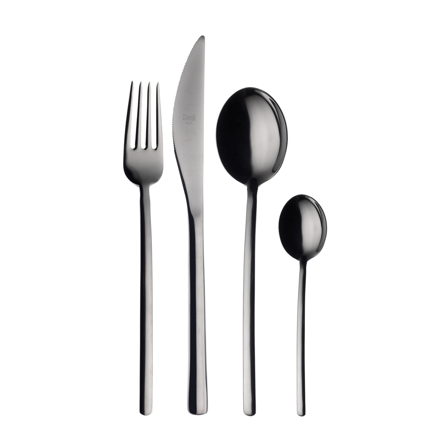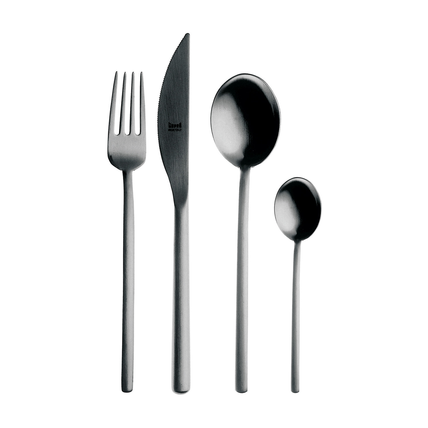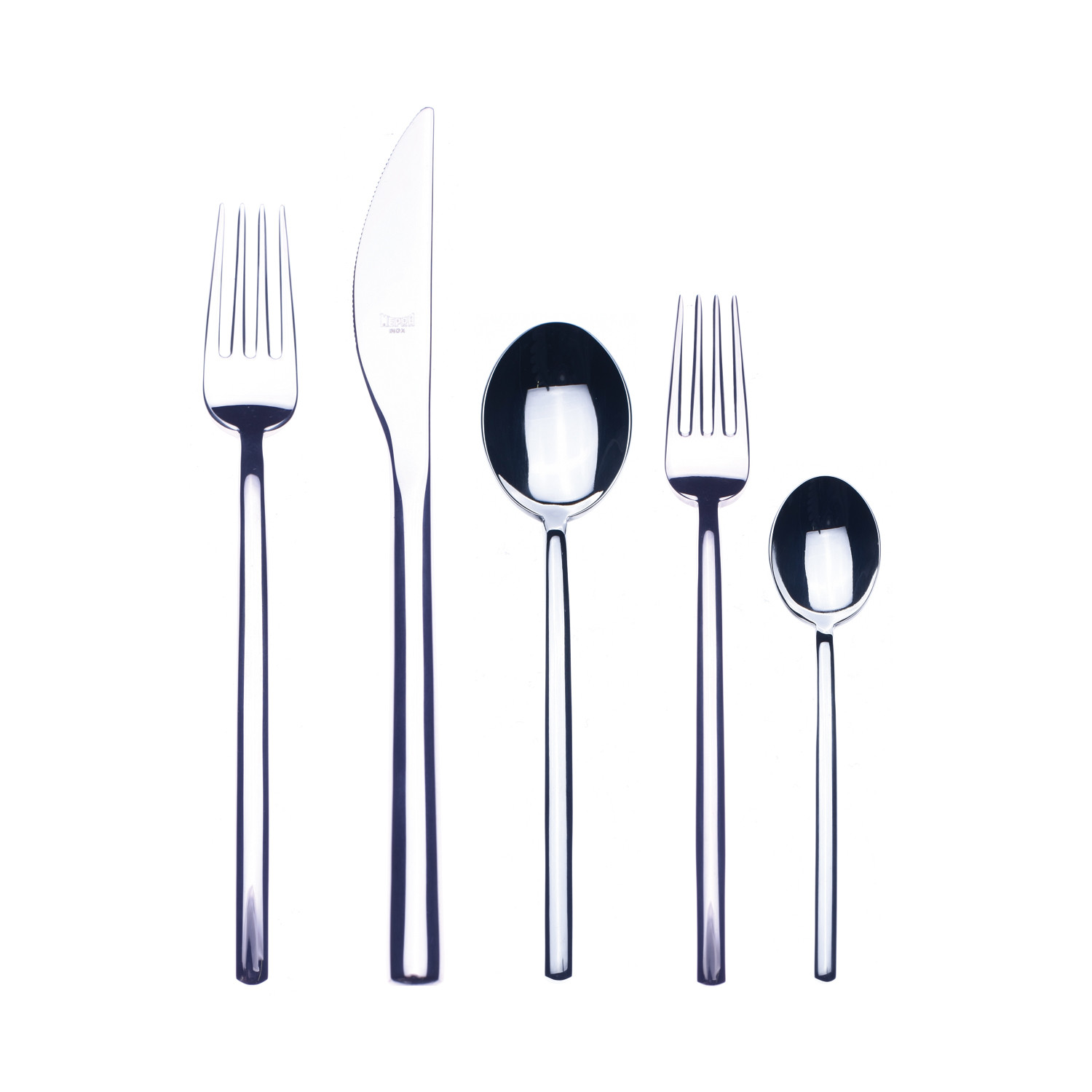 The Due 5 Pc Flatware set features an aesthetic unbalance, providing smooth and spirited shapes where traditional lines once took over. Crafted in stainless steel, this set comes in your choice of finish, with every metallic from smooth silver to beautiful bronze represented in this refined repertoire. Get a set for every guest at your gourmet table.
