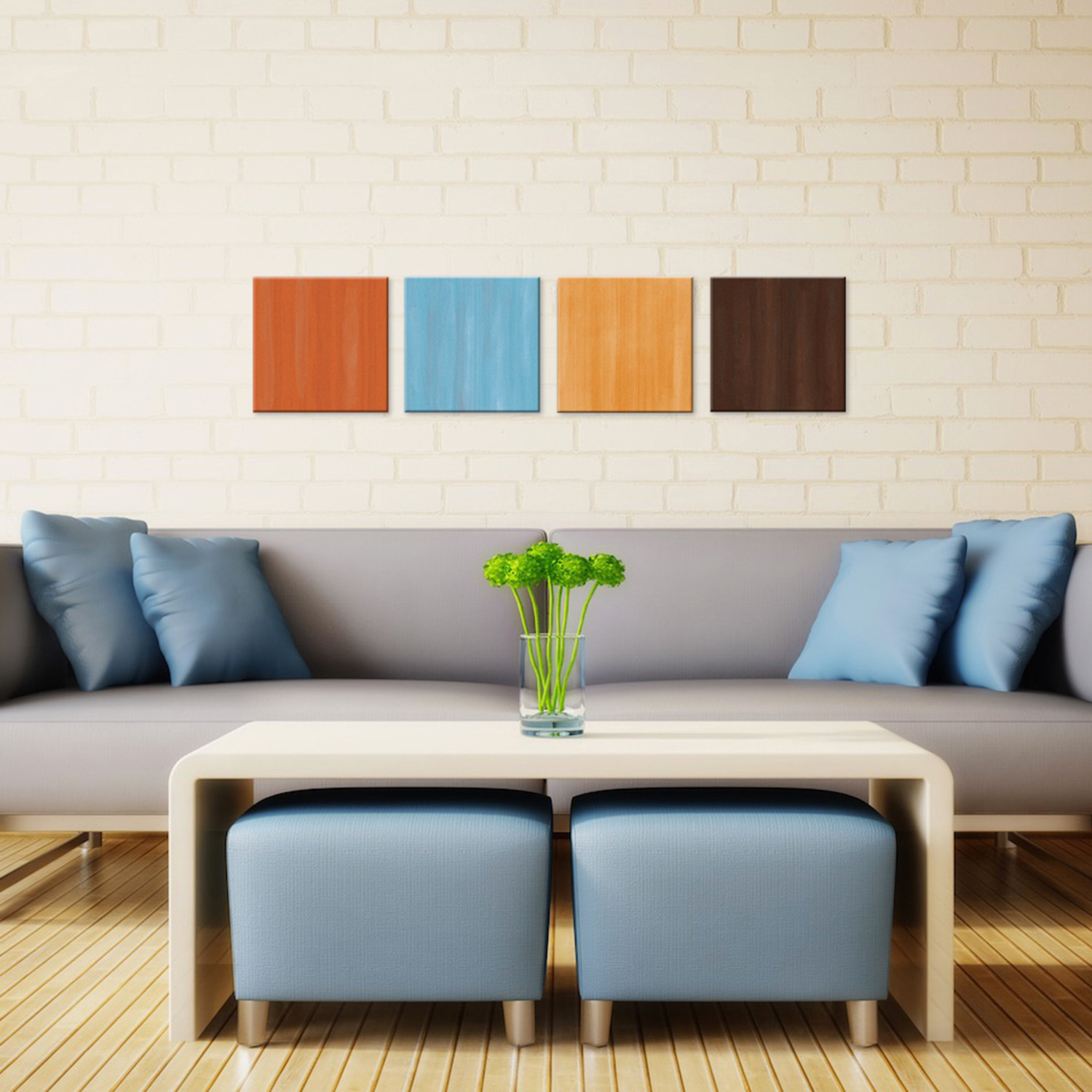 Cozy is one in a set of contemporary accent canvas paintings that Celeste made in various colorful combinations. She certainly has a gift for putting together gorgeous colors that compliment each other beautifully, emphasized with the texture and brushstrokes of a canvas painting. With ultra high-resolution flatbed application, Metal Art Studio is able to create stunning metal giclee prints of these modern art paintings, introducing a new texture and medium to Celeste's colorful contemporary wall artwork. Each panel hangs individually, giving the decorator flexibility with the layout and order of colors, making endless combinations of colorful accessories and decorations for your space. The beautiful and versatile color combinations, attractive matte finish and durable metal medium work beautifully in a living space, office, home, restaurant, hospitality, or restaurant display.