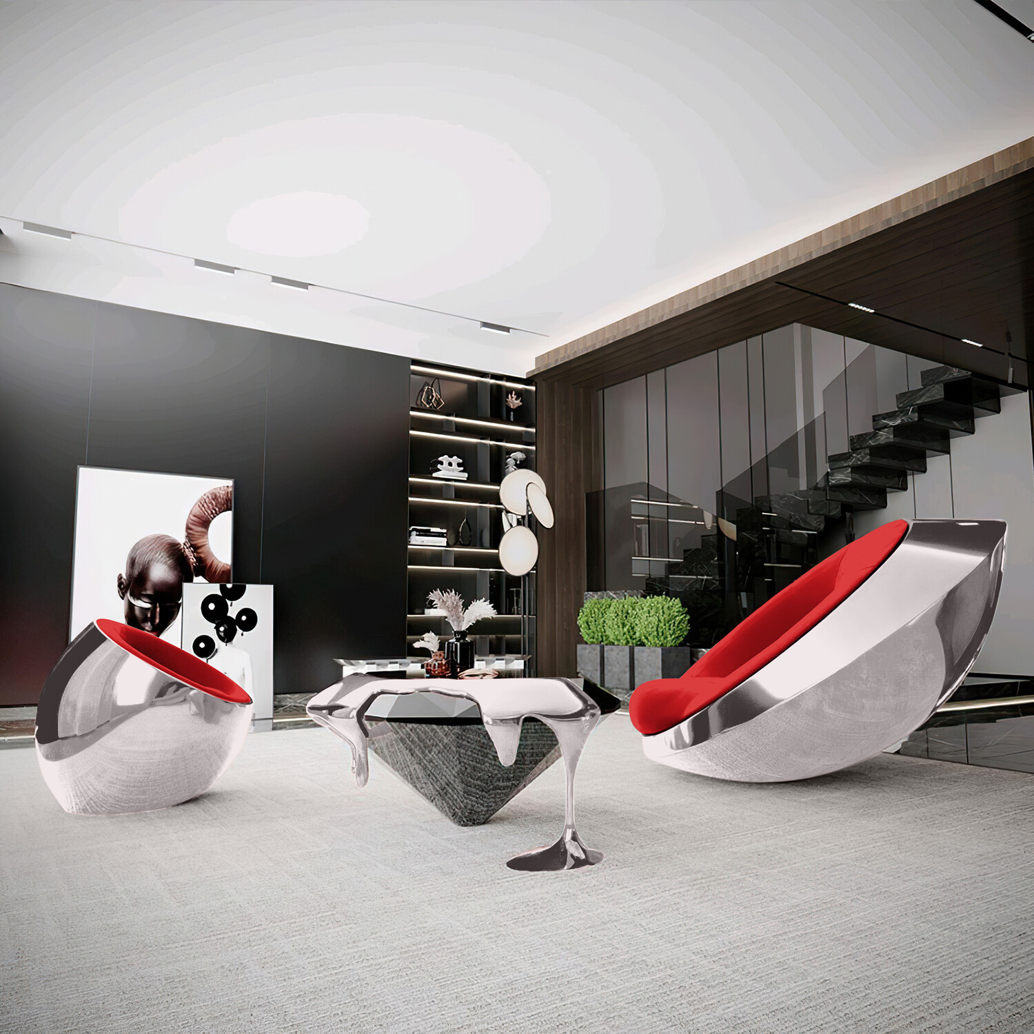 Meteora Statement Chair // Silver + Red