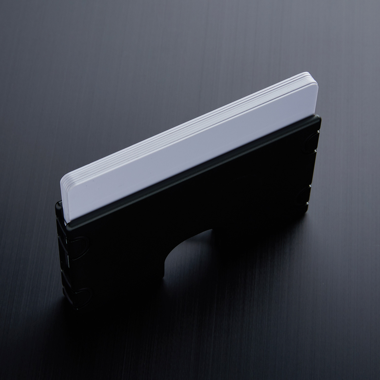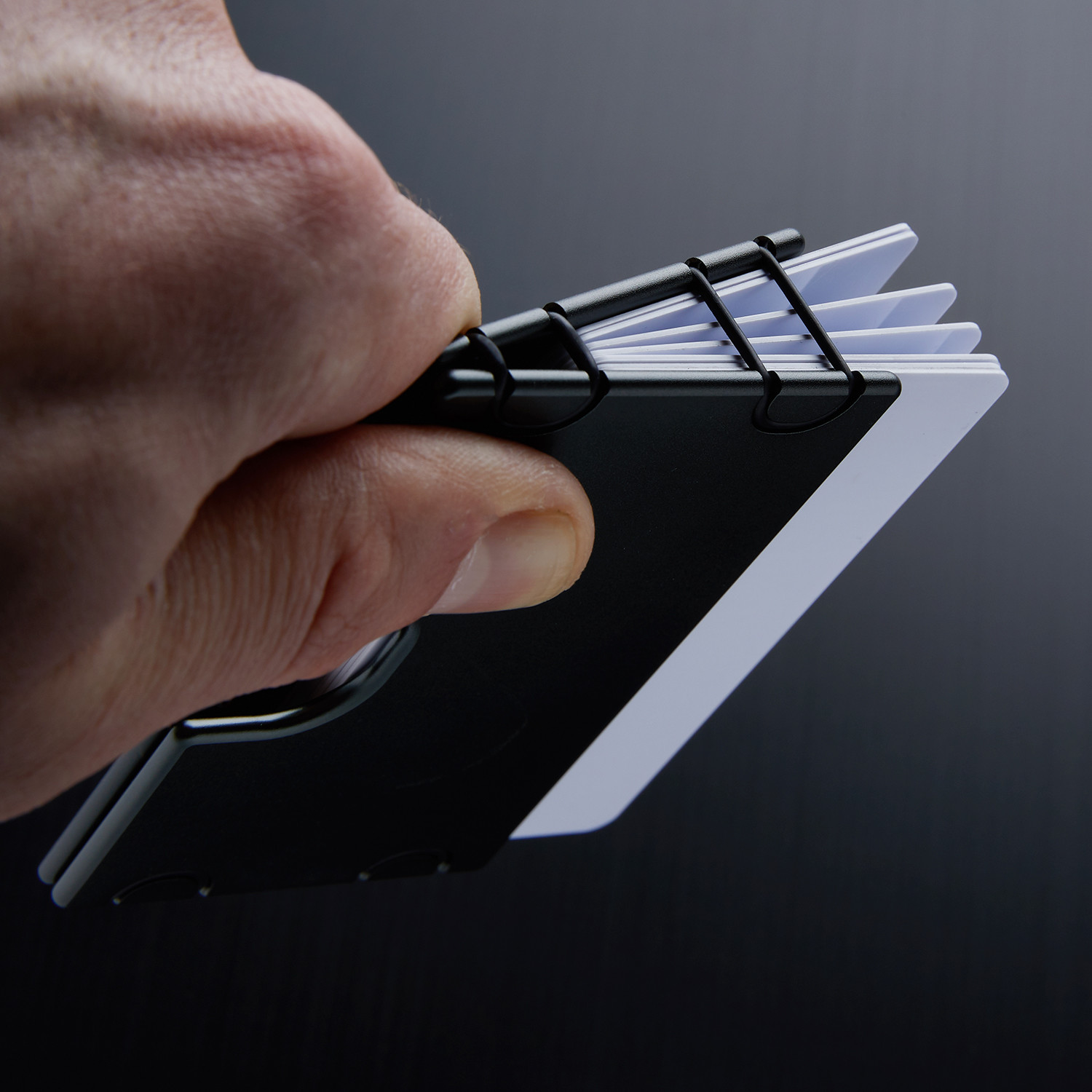 Creating this gorgeous Gunmetal Metahl wallet required machining, hand working, sand blasting, and anodizing. The end result is a slim and sturdy wallet, which holds up to 10 cards, or a combination of cash and cards together. It's light and compact, with a corrosion-resistant surface that can withstand getting wet. It even provides RFID protection, protecting you from identity theft by blocking your card from being scanned while inside. And with twelve O-rings included to keep every piece perfectly up to date, this wallet is sure to be your new everyday carry accessory.