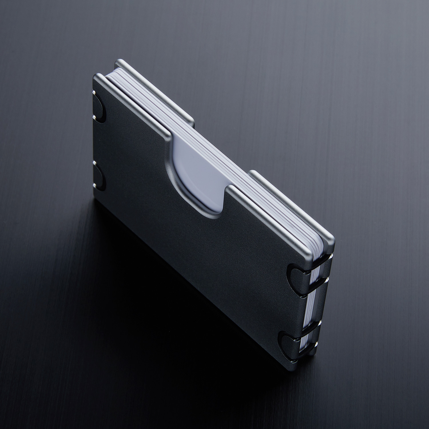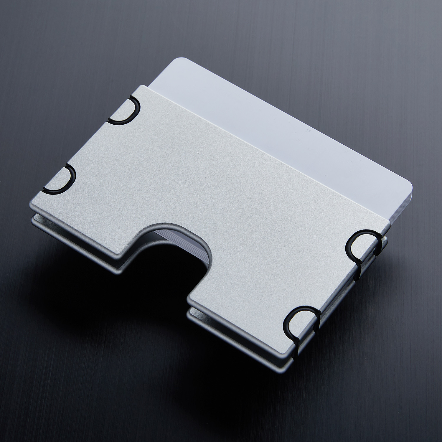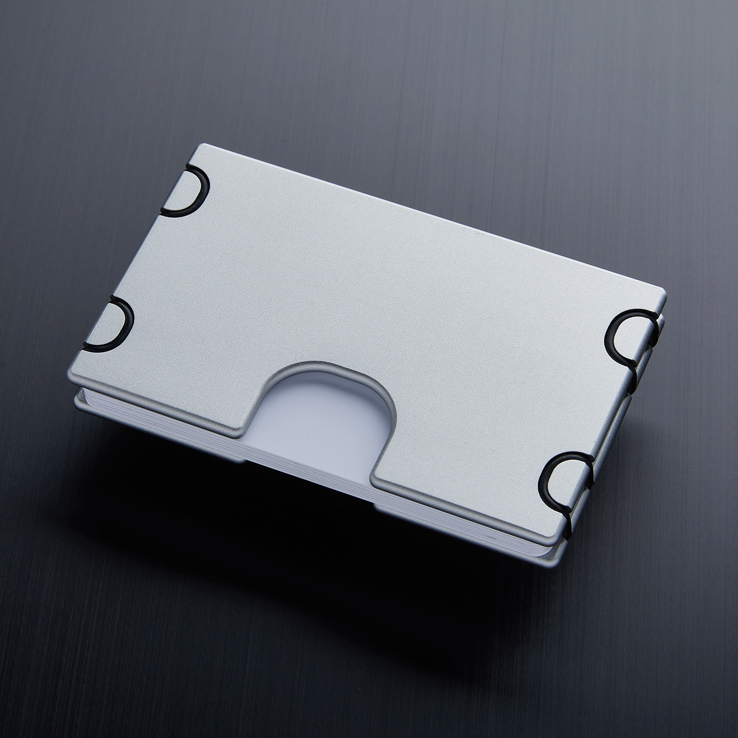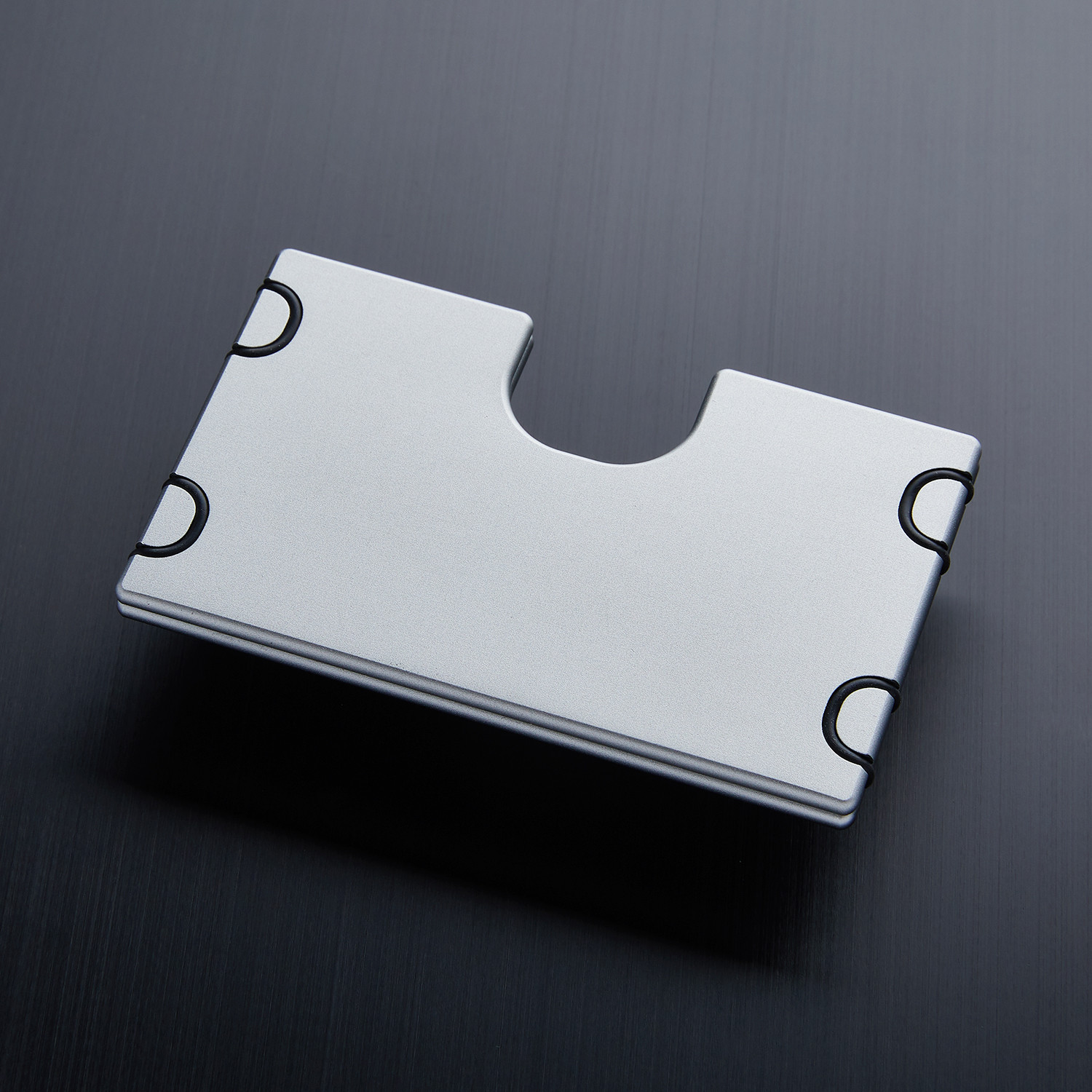 Creating this gorgeous Silver Metahl wallet required machining, hand working, sand blasting, and anodizing. The end result is a slim and sturdy wallet, which holds up to 10 cards, or a combination of cash and cards together. It's light and compact, with a corrosion-resistant surface that can withstand getting wet. It even provides RFID protection, protecting you from identity theft by blocking your card from being scanned while inside. And with twelve O-rings included to keep every piece perfectly up to date, this wallet is sure to be your new everyday carry accessory.