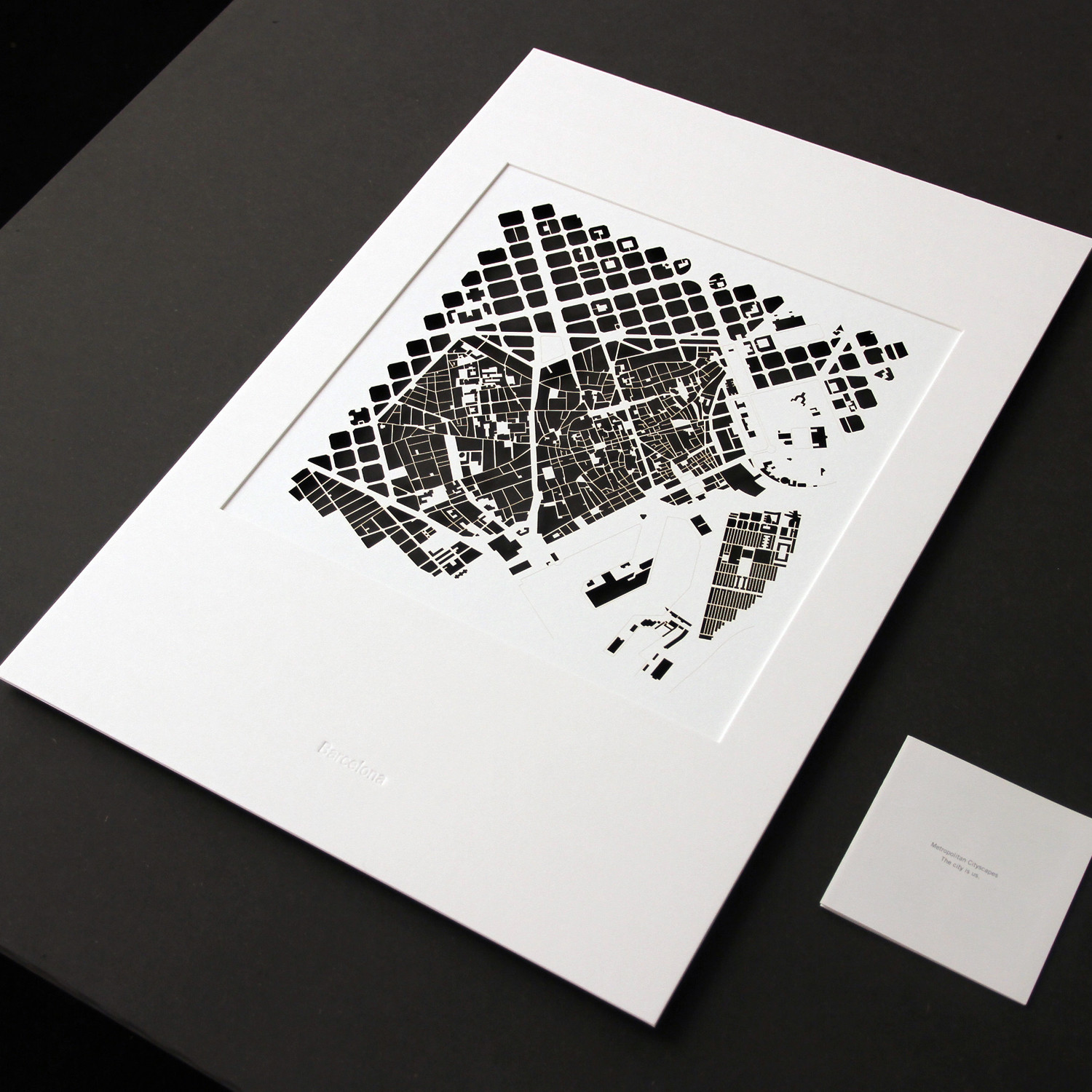 This intricately lasercut map of Barcelona is a fine addition to any modern home. The process of translating a city map into a laser cut art piece re-imagines the city as a beautifully abstract series of geometric shapes. The use of white paper plays with light and shadow as the map's appearance changes with subtlety depending upon the time of day.