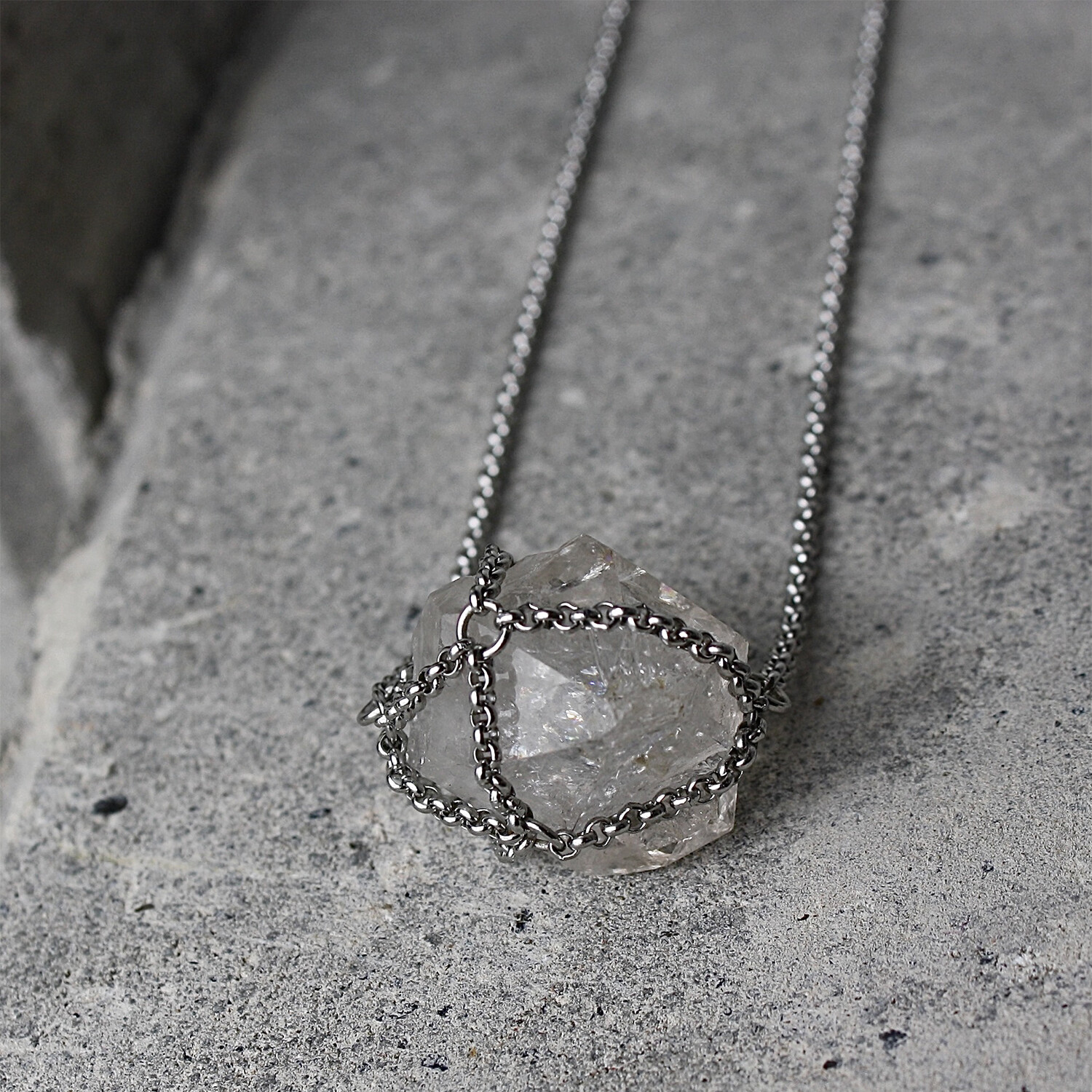 This one-of-a-kind quartz is locked into a chain, mimicking the intricate web spun by spiders. The impressive thing about this necklace is not just the precious stone it holds but also the delicacy and strength provided by the stainless steel chain. The tarnish-resistant material ensures longevity while maintaining its stylish appeal.