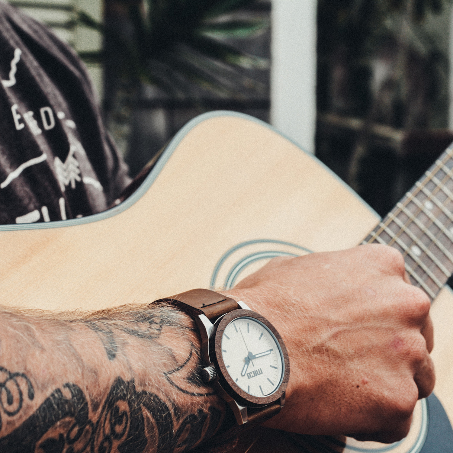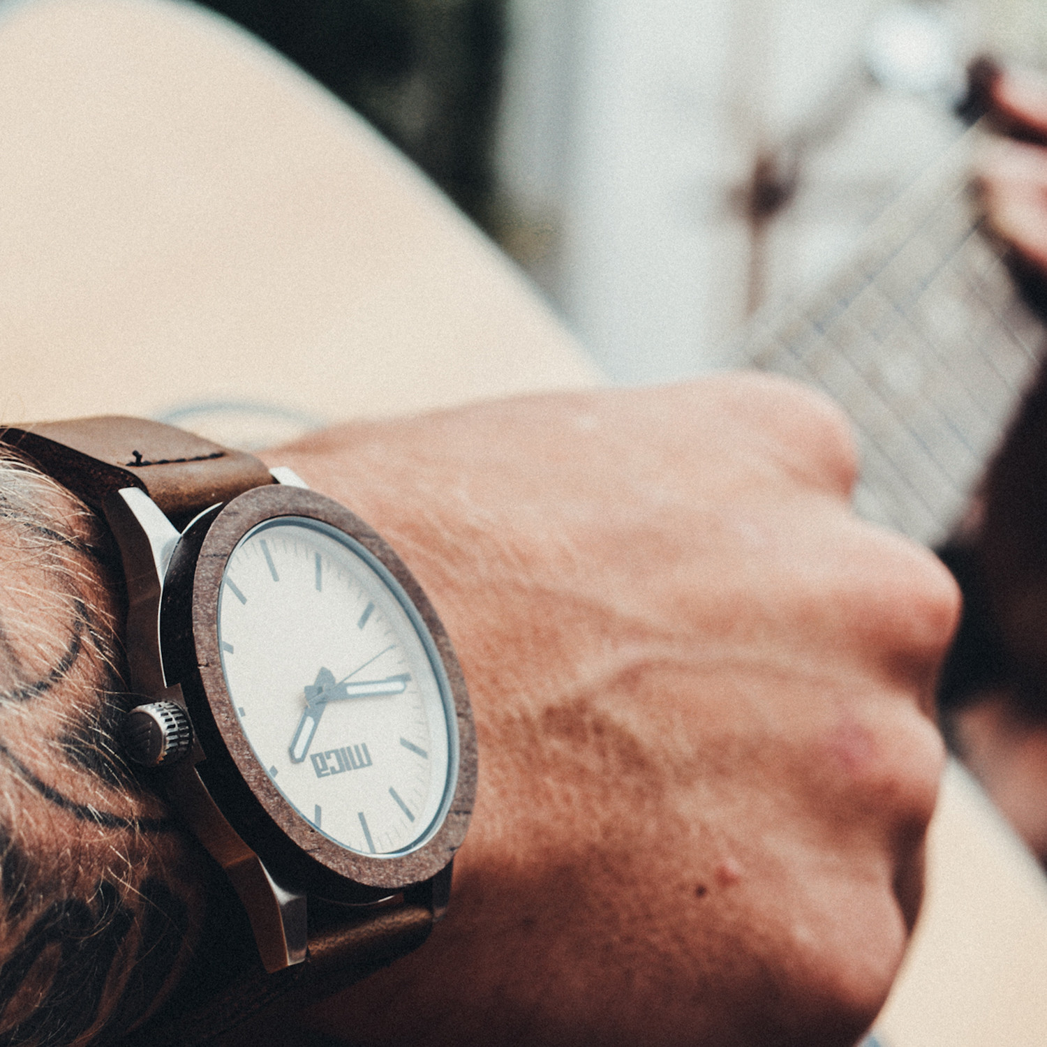 The Morris collection from Mica is characterized by its minimalist, high-contrast dial, and its unusual wooden bezel. Offering a subtle, but still distinctive vintage flair, every watch looks equally at home on the wrist of design-savvy urban dweller, or the wrist of silver screen stars of the 1960s.